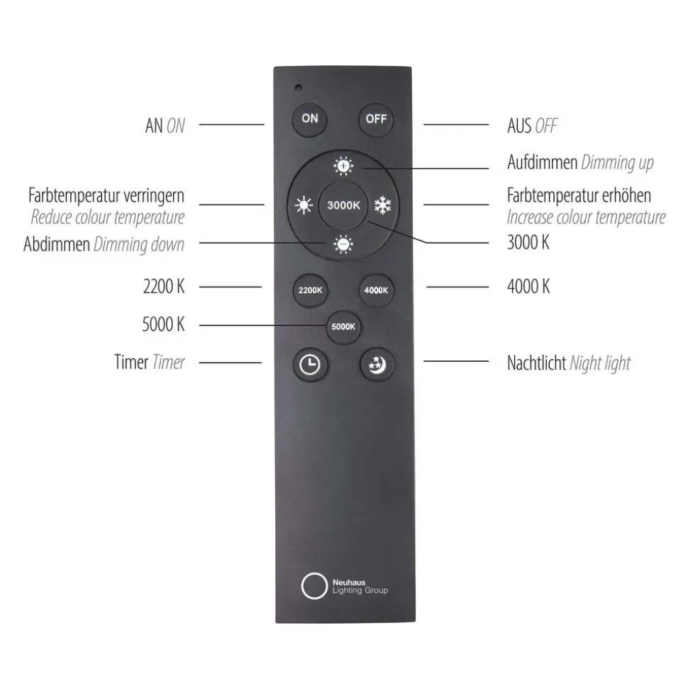 Den runde LED-loftlampe Lines fra Paul Neuhaus PURE overbeviser med sit puristiske design, som gør, at den passer godt ind i forskellige boligområder. Lyset stråler ned mod gulvet og kan styres med den medfølgende fjernbetjening. Det er muligt at ændre lysfarven fra varm til universalhvid. Desuden er loftlampe dæmpbar trinløst. Det er således muligt at tilpasse lysforholdene helt efter individuelle behov. Takket være den integrerede hukommelsesfunktion vender lampen tilbage til den sidst valgte lysindstilling, når den tændes.