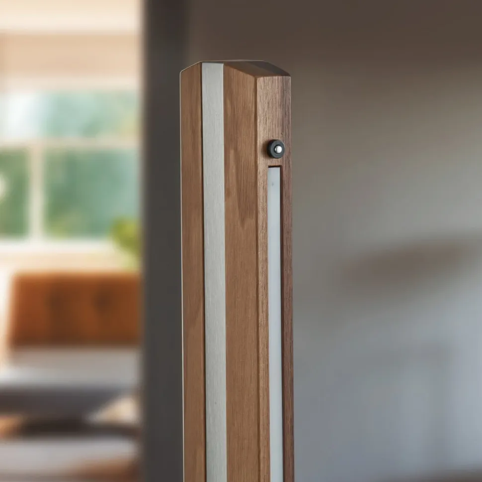 Dæmpbar Elis LED-gulvlampe i valnød med dekorative strips i mat nikkel Elegance og funktionalitet smelter sammen i Elis LED-gulvlampen, et mesterværk i moderne design, der skaber en varm og indbydende atmosfære i enhver stue eller spisestue. Den harmoniske kombination af valnød og moderne nikkelfinish giver denne gulvlampe en tidløs æstetik, der passer perfekt ind i ethvert interiør. Med en integreret LED-gulvlampe har Elis ikke kun en imponerende lang levetid, men også en høj energieffektivitet, der reducerer behovet for hyppige pæreskift og samtidig hjælper med at reducere energiforbruget. Den integrerede dæmpningsfunktion gør det muligt at justere lysstyrken efter behov for at skabe den perfekte lysstemning på ethvert tidspunkt af dagen og til enhver aktivitet. Lyset spotlightes både fremad og bagud. Takket være den integrerede hukommelsesfunktion genkaldes den sidst valgte lysindstilling, når lyset tændes. Gulvlampens overflade er omhyggeligt udformet i hånden. Elis er indbegrebet af en investering i langtidsholdbare belysningsløsninger, som er både stilfulde og funktionelle. ALS til et hyggeligt læsehjørne eller som accentbelysning til hyggelige aftener er denne gulvlampe et alsidigt tilbehør, der giver ethvert rum et særligt præg.