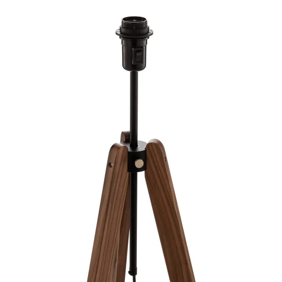 Trebenet gulvlampe Reba med stel i massivt træ og hvid chintz-skærm, fremstillet i Tyskland, højdejusterbar Reba kan bruges som gulvlampe i stuer og soveværelser, hvor den giver et meget hyggeligt lys, fordi stofskærmen er lavet af hvidt chintz-stof og fordeler lyset på en behagelig måde. Under stoffet er der en B1-bagsidefilm i flammehæmmende kvalitet, og i den nederste del suppleres den elegante lampeskærm af et trebenet stel af valnøddetræ. Det kan justeres i højden ved at skubbe stangen, der fører til fatningen, op eller ned. Det gør det lettere at tilpasse lampen til situationen på stedet. Der er også en afbryder direkte på fatningen, så den kan nås hurtigt og nemt af brugeren. Lampen, hvis komponenter harmonerer godt med hinanden, er et kvalitetsprodukt fremstillet i Tyskland.