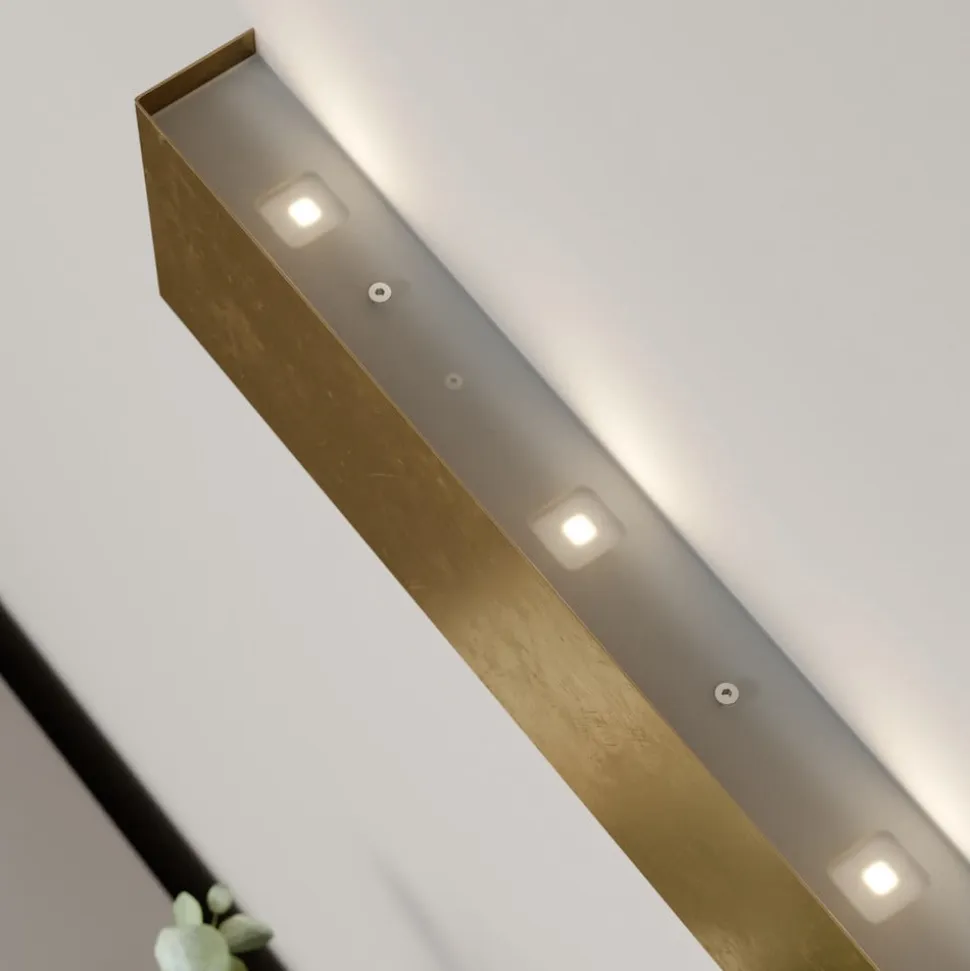 Maja LED-væglampe fremstillet i Tyskland Maja LED-væglampen er et gyldent blikfang på væggen. Det faktum, at de integrerede Citizen LED’er ikke er direkte synlige, men er skjult bag den rektangulære afdækning, gør lampen særligt attraktiv. Når alt kommer til alt, er stemningsbelysning normalt beregnet til at skabe en hyggelig atmosfære uden at blænde. Det er dog ikke kun det indirekte lys, der skaber en hyggelig atmosfære, men også den stemningsfulde lysrefleksion på skærmens guldfarvede strukturerede overflade. Prikken over i’et er, at LED’erne kan dæmpes med enten en leading edge- eller trailing edge-fasedæmper.