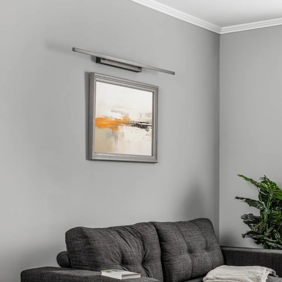 Smal Talon LED-gallerilampe med CCT og dæmpningsfunktion Talon LED-gallerilampen kan bruges i offentlige områder som f.eks. gallerier eller museer. Alternativt kan den også installeres i dine egne fire vægge for at fremvise fotografier eller malerier. LED-lampen er lavet af aluminium og imponerer med sin subtile lyse bronzefarve, som gør, at den nemt passer ind i mange interiører. Overfladen er omhyggeligt forarbejdet i hånden og giver væglampen et individuelt look. Gallerilampens særlige højdepunkt er den integrerede dæmpbare og CCT-funktion. Lysstyrken kan reguleres, og lysfarven kan varieres trinløst fra varm hvid til universalhvid ved hjælp af en fjernbetjening. Det betyder, at kunstværker eller dekorative genstande kan fremhæves perfekt i enhver situation. Takket være vippeleddet kan Talon også vippes, så lysvinklen kan justeres individuelt.