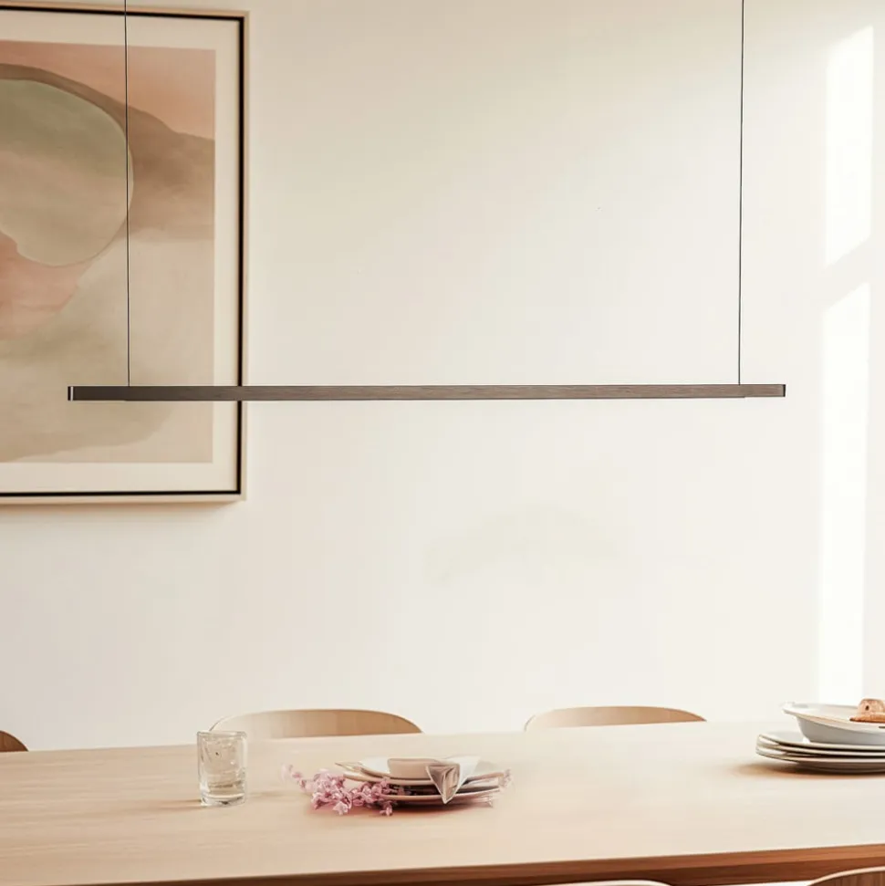 Smal Talon LED-hængelampe af aluminium i lys anodiseret bronze Talon LED-hængelampen imponerer med sin lange, smalle form, som gør det muligt at integrere den ubesværet i forskellige boligområder og indretningsstile. Den er fremstillet af aluminium, messing og akryl og har en overflade, der er omhyggeligt udformet i hånden. Den anodiserede aluminiumsoverflade har også en beskyttende belægning, som forhindrer den naturlige oxidering af metallet. Pendellampen er særlig praktisk – højden kan justeres, og den er også udstyret med en bevægelseskontrol. Det gør det muligt at reducere lysstyrken, og farvetemperaturen kan justeres trinløst fra varmhvid til universalhvid. De ønskede lysforhold til enhver situation kan indstilles på ingen tid. Talon er ideel til brug over et stue- eller spisebord.