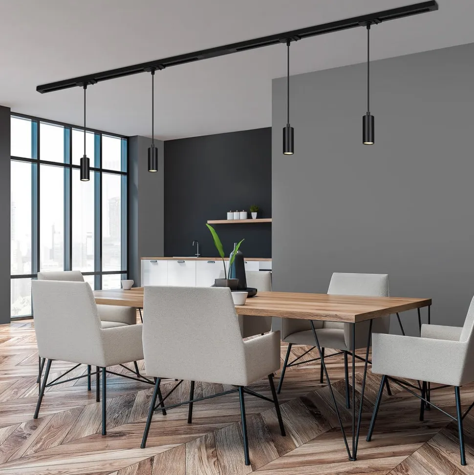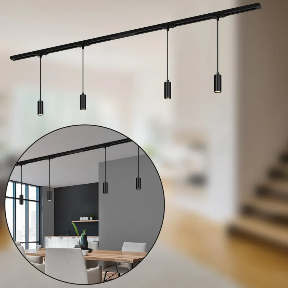 RAIL 230 V skinnesystem, sort, 4 LED-pendler, længde 1,5 m