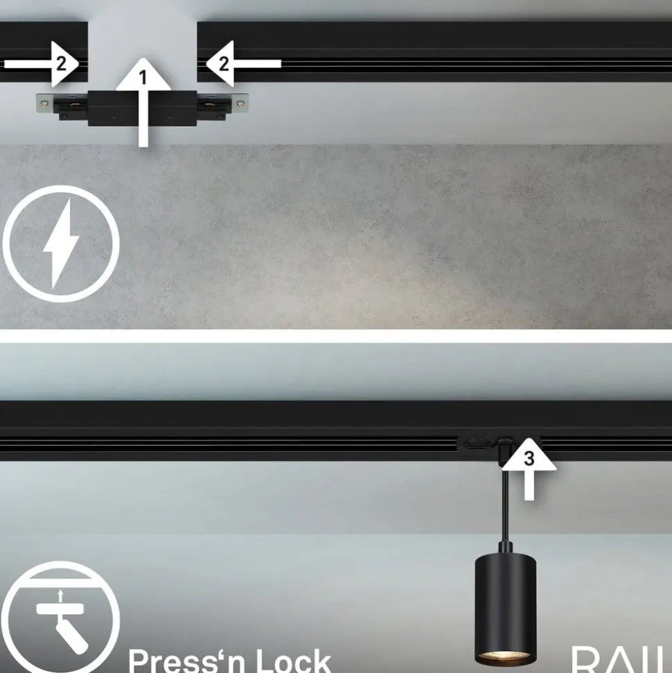 RAIL 230 V skinnesystem, sort, 4 ophæng, længde 1,5 m