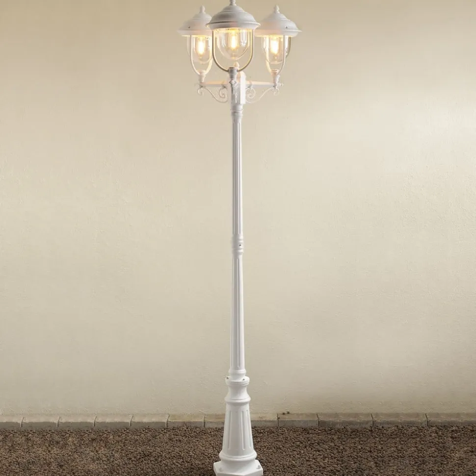 PARMA tre-lys kandelaber skaber en romantisk stemning udendørs PARMA er en klassisk kandelaber i aluminium. De tre lanterner er arrangeret i en trekant på den smukt dekorerede stang og garanterer fremragende belysning takket være det klare lampeglas.
