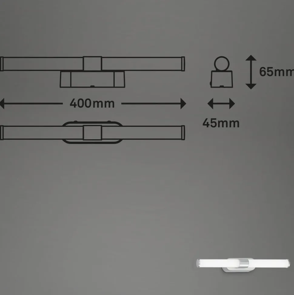 LED-væglampe Runt – perfekt til spejlbelysningVæglampen Runt af plast er udstyret med et satineret lyselement i form af en lang cylinder, som udsender det varme hvide lys fra de integrerede LED’er homogent hele vejen rundt. Dermed opnås en generøs belysning på alle sider. Især ved siden af/over et spejl på badeværelset eller i garderoben finder Runt LED-væglampen med stænkvandsbeskyttelse (IP44) sit ideelle anvendelsessted.