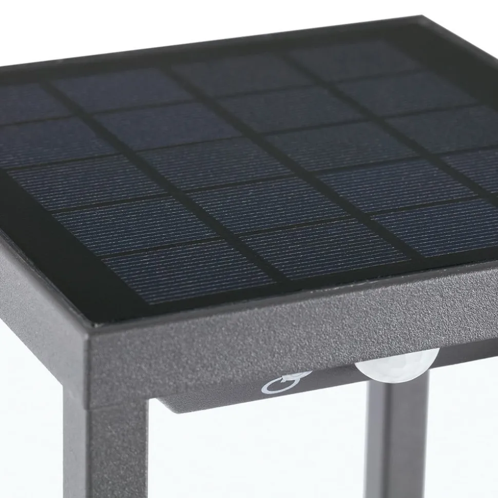 Saura havelampe med solpanel og bevægelsessensor – elegant lysaccent til udendørsarealer Denne sokkelampe imponerer med sit slanke udseende og pålidelige funktion. Saura LED-lampen er beskyttet mod indtrængen af vandstænk takket være IP54-beskyttelsesgraden, hvilket gør den ideel til udendørs brug. Takket være solcelleelementet forbliver denne havelampe uafhængig af strømforsyningen og giver klart, blændfrit lys i timevis. Bevægelsesdetektoren hjælper med at spare energi og forlænger driftstiden for Saura LED-piedestallampen. Lyskilden er designet i et diskret nostalgisk look med et elegant moderne præg og er et stilfuldt tilbehør til haven. Da der medfølger et jordspyd i sættet, er der forskellige muligheder for at bruge Saura LED-sokkelampen. Lampen kan installeres som mobil on-demand-belysning på terrassen, som en fleksibel lyskilde i indgangspartiet eller som et fast element i havens belysningskoncept. Uanset om den bruges individuelt eller som et sæt af flere lamper, giver Saura havelampen diskret belysning i udendørs områder. Tekniske data – Dækningsvinkel: 120° – Rækkevidde: 6 meter – Belysningstid: maks. 3 timer