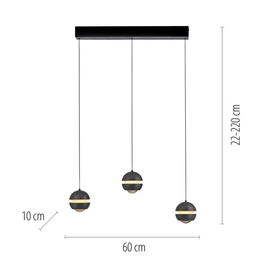 LED-hængelampe Lini, 3 lyskilder i lang form