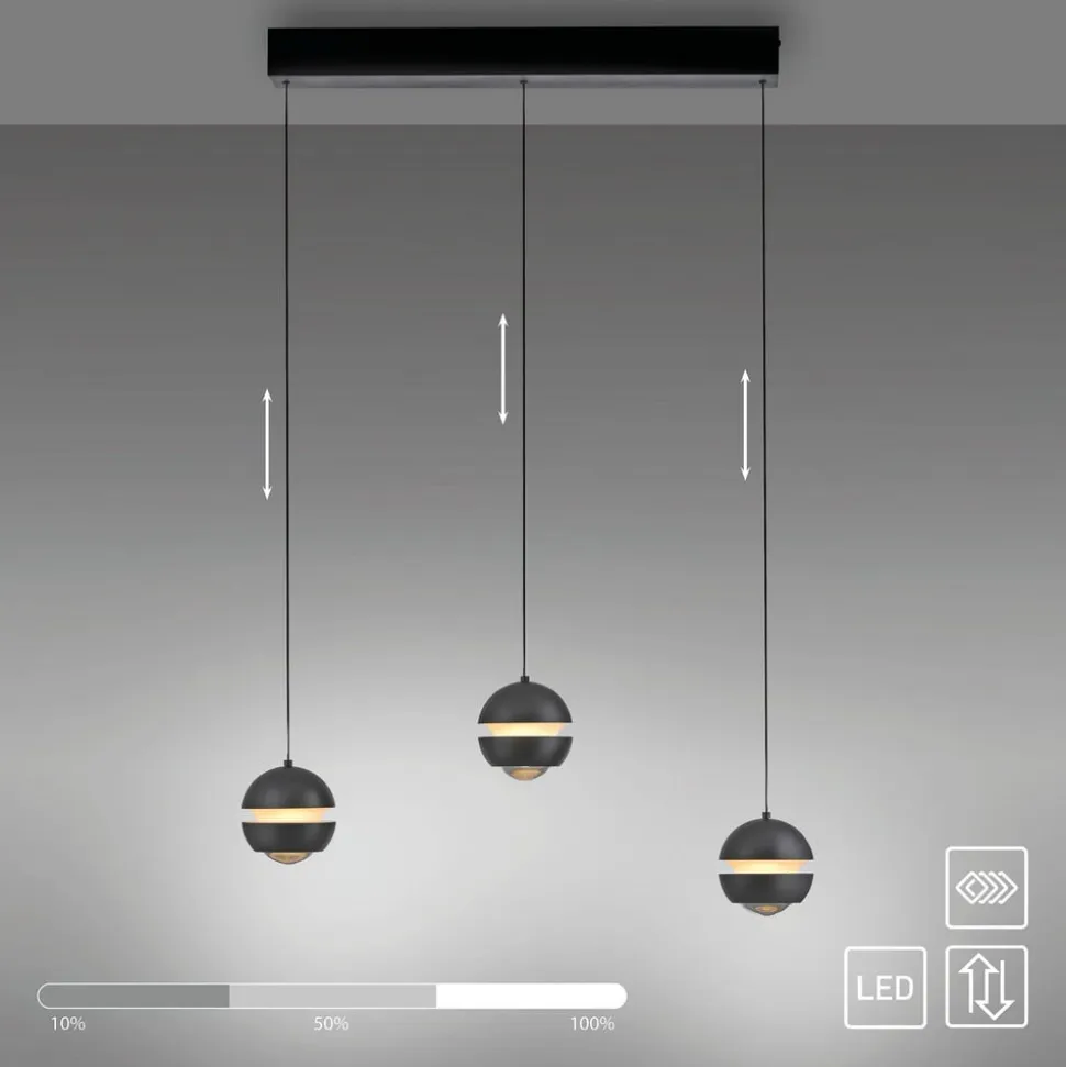 Den 3-lyskejl LED-pendellampe Lini fra kollektionen SCHÖNER WOHNEN imponerer med sit minimalistiske og elegante design. Med sine tre kugleformede lampeskærme med effektfulde lysudgange sætter lampen elegante accenter over spiseborde, køkkenøer eller i stuen og udstråler varmhvid belysning, der skaber en behagelig atmosfære. Takket være Switchmo-teknologien kan lysstyrken nemt indstilles i tre trin (100 %, 50 % eller 10 %) ved hjælp af en almindelig lyskontakt. Således kan man indstille lyset optimalt, hvad enten det er til en stemningsfuld atmosfære eller til koncentreret arbejde. Et særligt highlight er den praktiske Comfort-Lift, som gør det nemt at justere højden på hver enkelt pendel. Så kan man fleksibelt og bekvemt tilpasse lampen perfekt til enhver boligindretning og ændre udseendet igen og igen. LED-pendellampen Lini overbeviser med stilfuld diskretion og passer perfekt ind i ethvert opholdsrum.