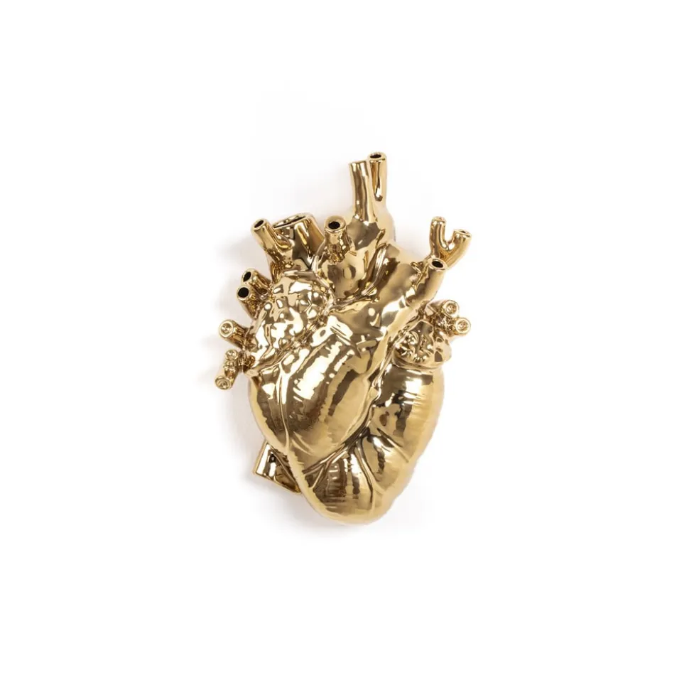 SELETTI Love in Bloom-vase, guldfarvet, hjerteformet, porcelæn
