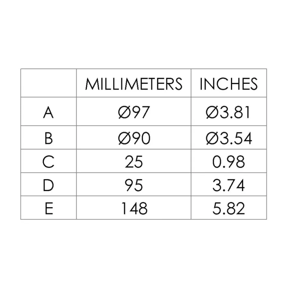 - Ø skærm 9 cm; Ø vægmontering 9,7 cm