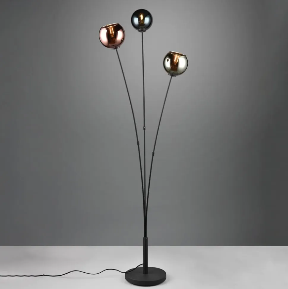 Sheldon gulvlampe med 3 glas-kugleskærme