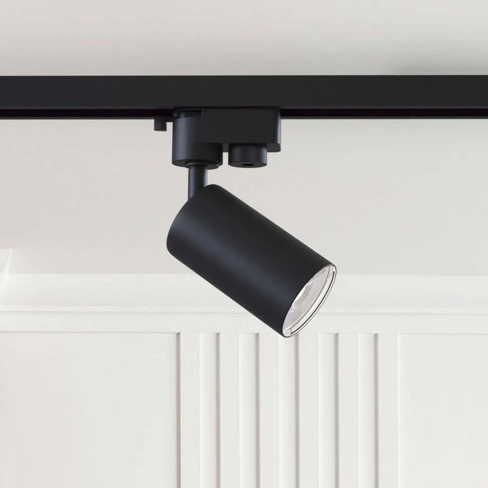 Moderne skinnespot Track i elegant sort til 1-kredsløbssystemer Den er lavet af pulverlakeret aluminium og imponerer med sin mørke elegance og sit moderne look: Den sorte Track skinnespot har et lampehoved, der kan drejes 360° og svinges 90°. På den måde kan lysstrålen fra GU10-pæren (medfølger ikke) rettes individuelt og fleksibelt.