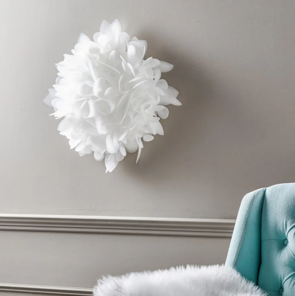 Bæredygtig og eksklusiv Veli-væglampe i hvid løvfinish Denne imponerende og yderst dekorative designervæglampe fra Veli-serien efterlader et varigt indtryk. Dens organiske form udstråler en følelse af livlighed og giver beskueren mulighed for at genopdage lyset hver dag. Veli består af over 200 plug-in-forbindelser og er resultatet af ægte håndværk. De enkelte elementer er støbt i hånden og kombineret til en tredimensionel krop. De er fremstillet udelukkende af den patenterede plast Opalflex®, som er udviklet af den italienske producent Slamp selv. Plasten består af technopolymerer og glaskrystaller, som er ekstremt fleksible og fuldstændig ubrydelige. Materialet giver Veli en tiltalende, fin kontur, som resulterer i en ensartet lysspredning. De spændende lyseffekter, der opstår omkring væglampen, fungerer enten som blød, generel rumbelysning eller giver ledsagende lys til en dekorativ accent. Takket være det praktiske magnetsystem kan skærmen nemt tages af og rengøres. Den Rom-baserede producent Slamp blev grundlagt i 1992 af Roberto Ziliani. Et af virksomhedens store og mangeårige projekter handler om bæredygtighed. Ved at fremstille lamperne af technopolymerer firdobles miljøomkostningerne. Slamp bruger ikke skruer eller klæbemidler, og alle rester genbruges eller doneres fra 2020 til virksomheder, der bruger det overskydende materiale til at lave redekasser til humlebier.
