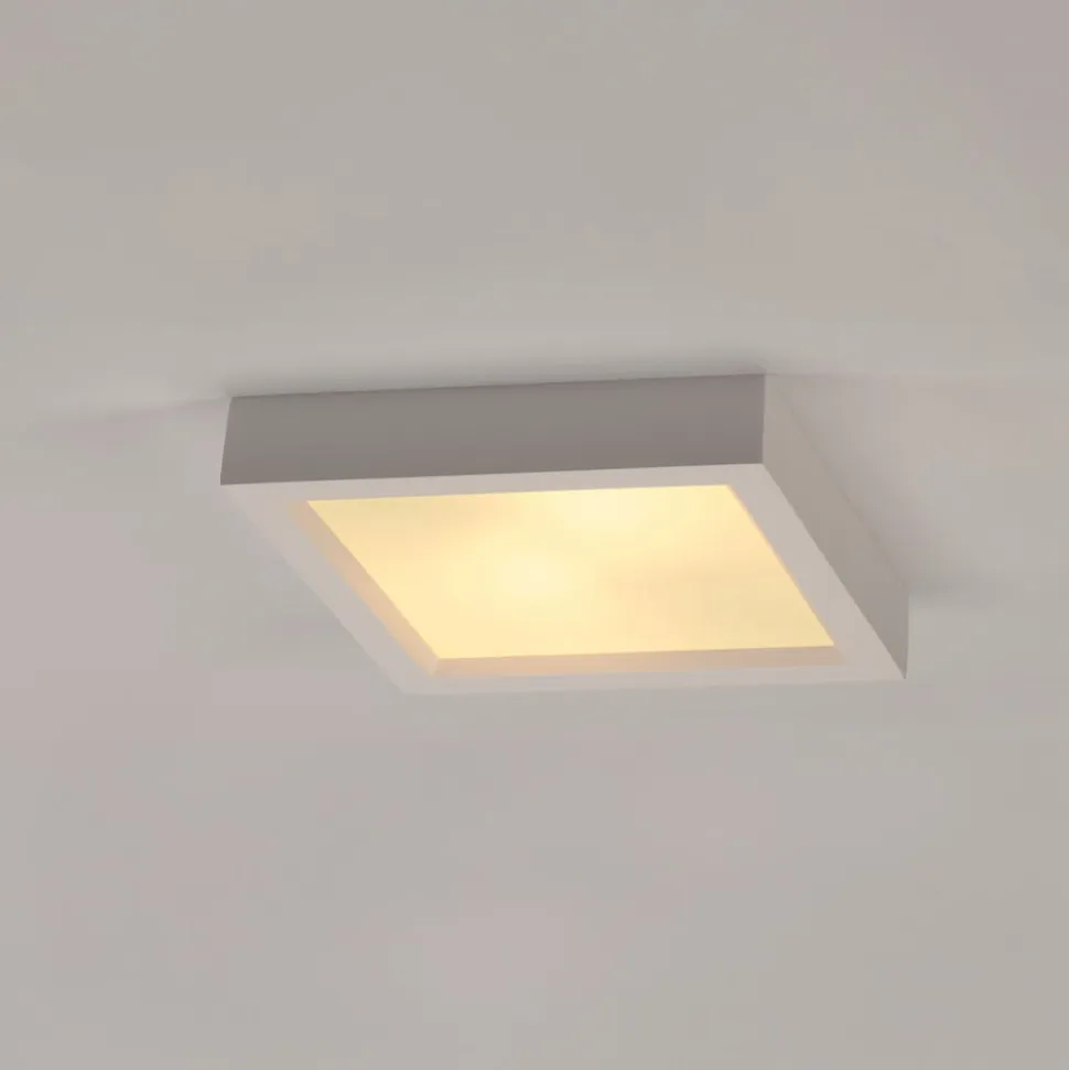 Malbar Plastra loftlampe af gips Skærmen på Plastra loftlampen, som har et meget puristisk look med sine klare linjer, er lavet af gips. Plastra giver en effektiv rumbelysning og kan males over (efter grunding) med en standard vægfarve, så den passer til indretningen. Det medfølgende sandpapir bruges til at fjerne smudspartikler – Kan dæmpes eksternt
