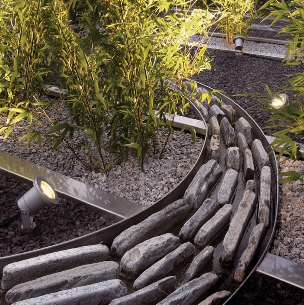 Nautilus jordspyd til brug i haven for smukke lyseffekter om natten Nautilus Spike udendørs spotlight kan bruges til effektivt at belyse genstande som havedamme, planter osv. fra haven. Udstyret med et jordspyd garanterer denne spotlight større fleksibilitet, da den kan trækkes op af jorden og flyttes til et andet sted med blot et par enkle trin, hvis den ikke er nødvendig, eller omgivelserne ændrer sig. Plæner og blomsterbede af enhver art er velegnede til dette formål, og lyshovedet kan drejes 180°. Nautilus kan ikke bruges med sparepærer. 1,5 m tilslutningskabel og netstik medfølger. kan drejes 180°.