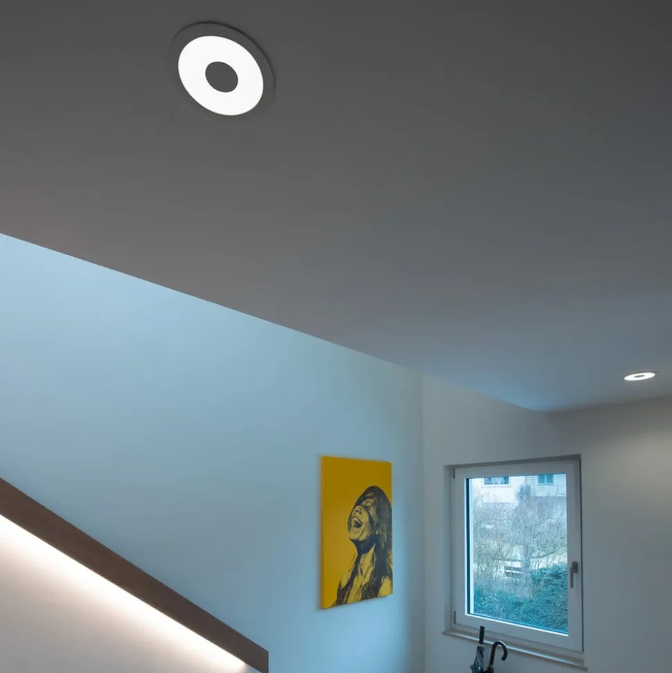 Occuldas 14 forsænket LED-loftlampe Occuldas 14 dæmpbar forsænket LED-loftlampe, eksklusivt designet af David Morgan, er udstyret med en 15 W premium LED. Centerpanelet giver en homogen, blændfri, atmosfærisk og indirekte belysning. Takket være den forudinstallerede LED-driver er armaturet egnet til direkte tilslutning til en 230 V-netforsyning.