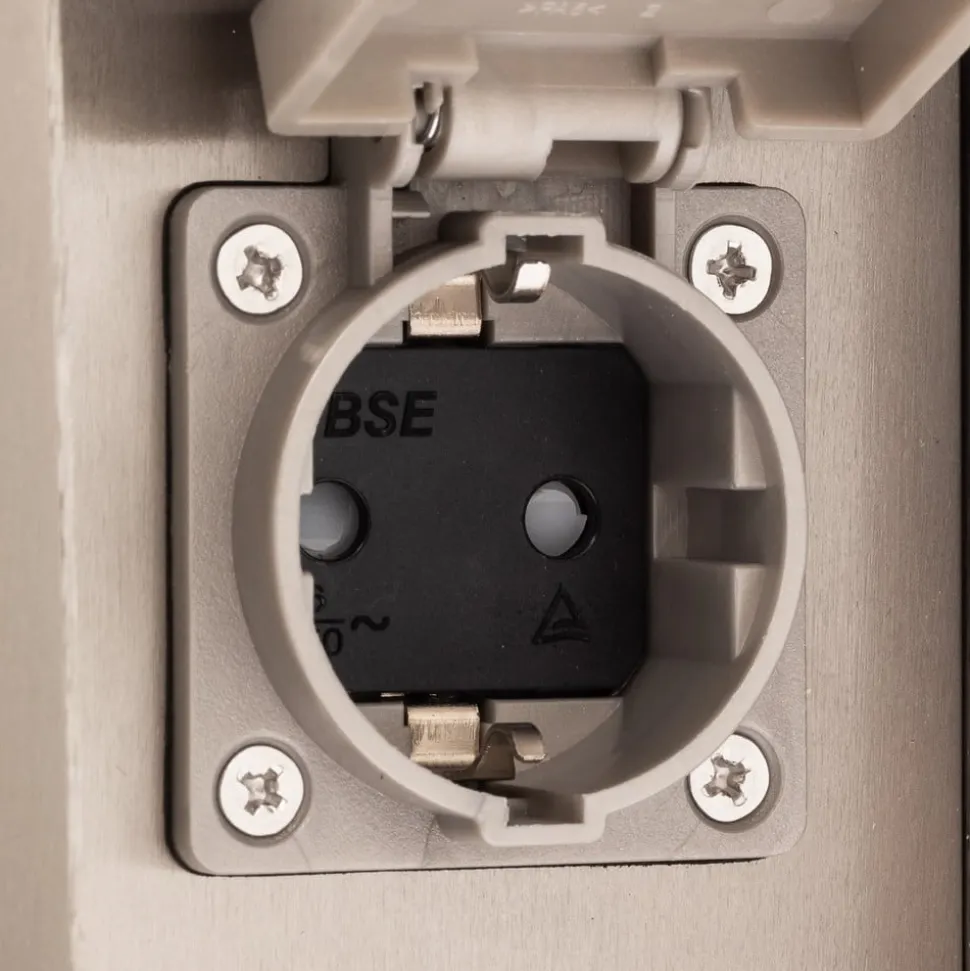Stikkontaktkolonnen Voicu er perfekt til haven eller terrassen. Den kantede form og det enkle design passer nemt ind i udendørsområdet. Kapslingsgraden IP44 gør den desuden beskyttet mod stænkvand. Den har tre Schuko-stikdåser, hvorigennem yderligere tekniske apparater kan tilsluttes ved hoveddøren.