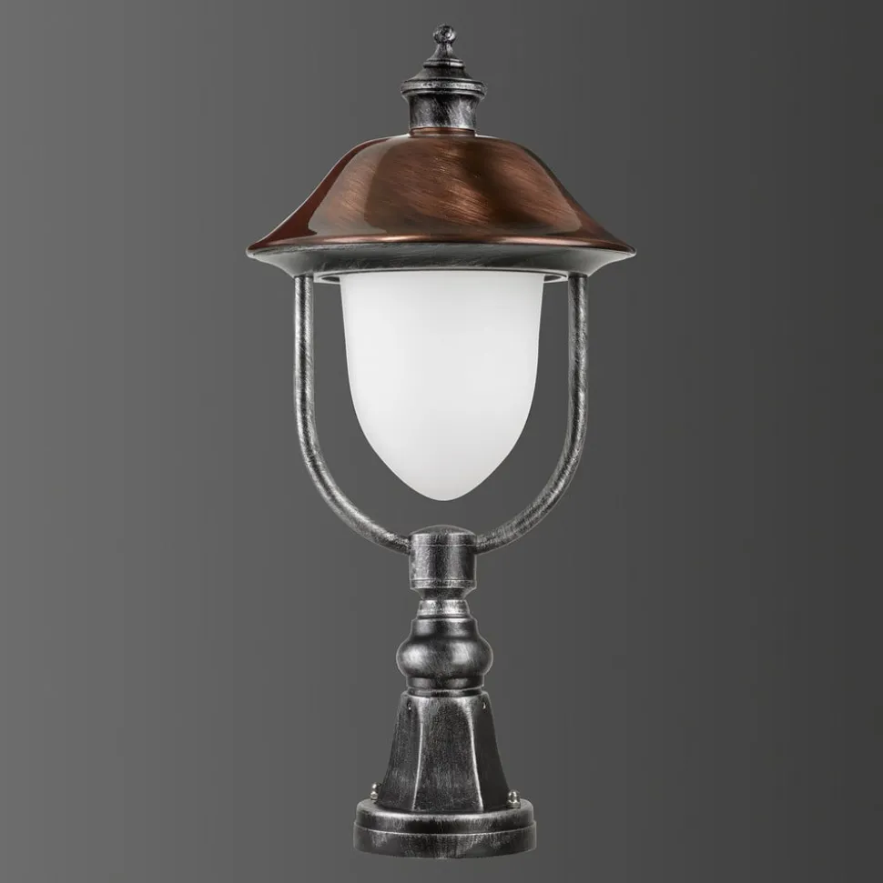 Optimal afgrænsningsbelysning: 1157 sokkellampe med antik charme Det antikke design på 1157 sokkellampen afspejles ikke kun i dens form, men også i dens farveskema. Det trykstøbte aluminiumshus har en sort metallisk finish og fremhæves på imponerende vis af det lys, der udsendes fra det opale lampeskærm. Glassets æstetiske form er et andet plus ved sokkellampen 1157, som giver en passende baggrundsbelysning på enhver ejendom.