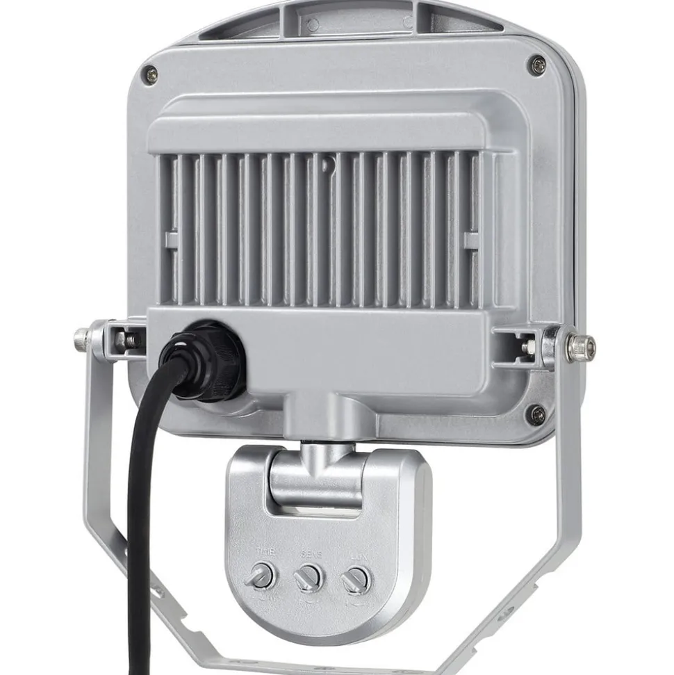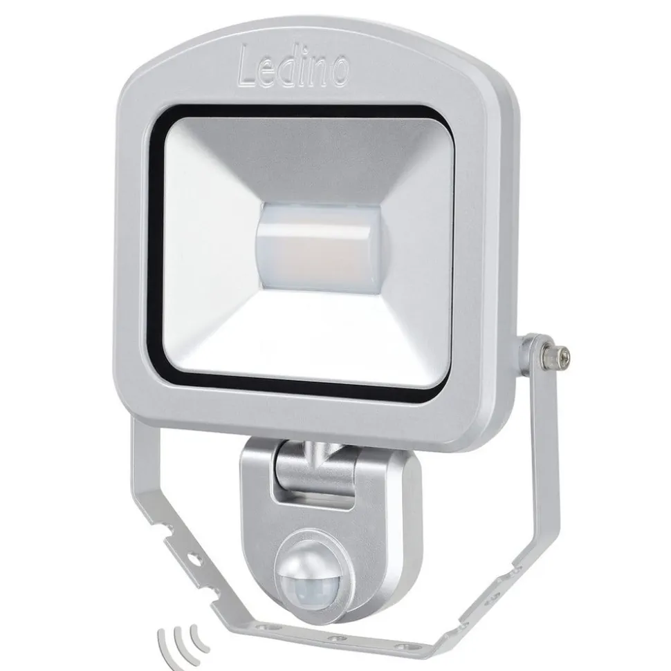 Sølv LED udendørs spotlight Charlottenburg lavet af støbt aluminium med IR-sensor