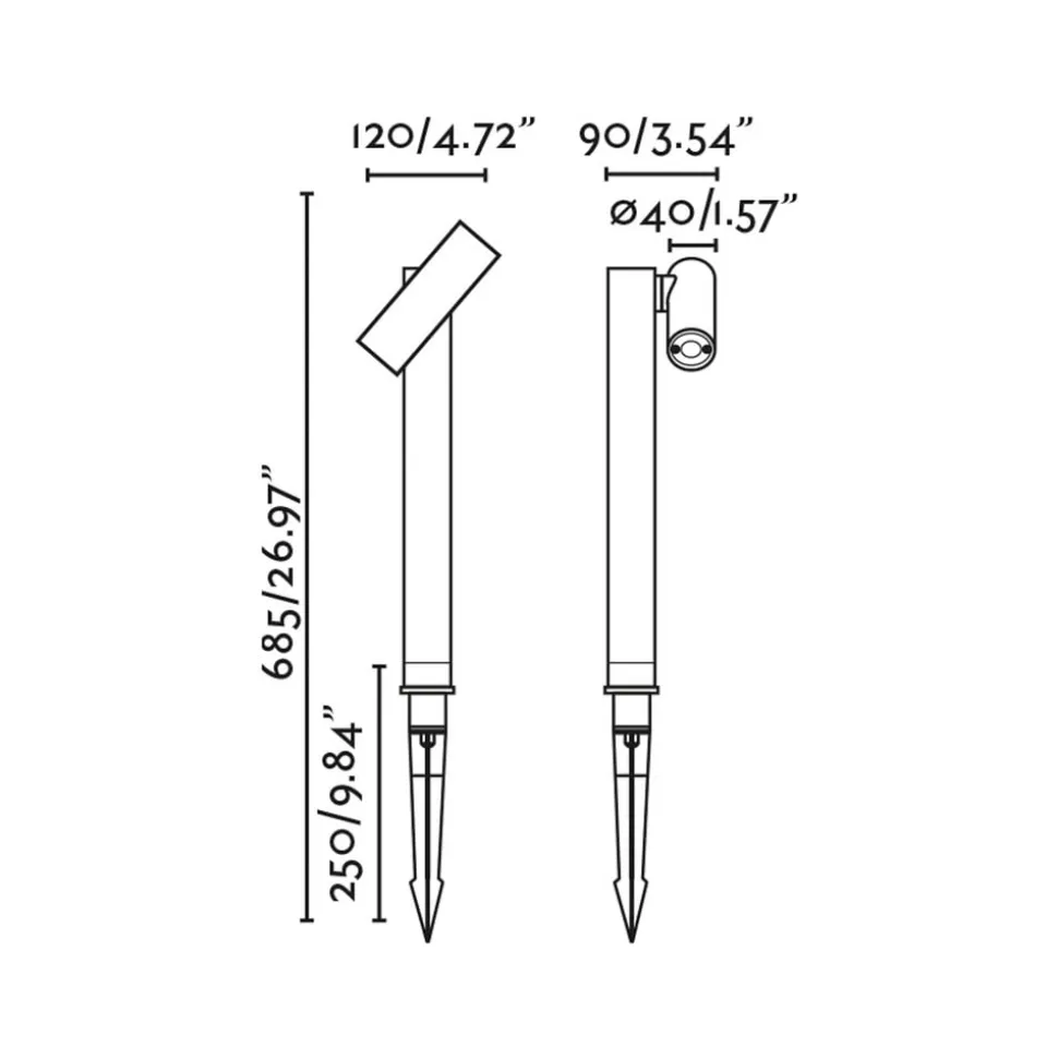 - Længde på tilslutningskabel 200 cm; Ø lampehoved 4 cm; højde på jordspyd 25 cm; totalhøjde 68,5 cm