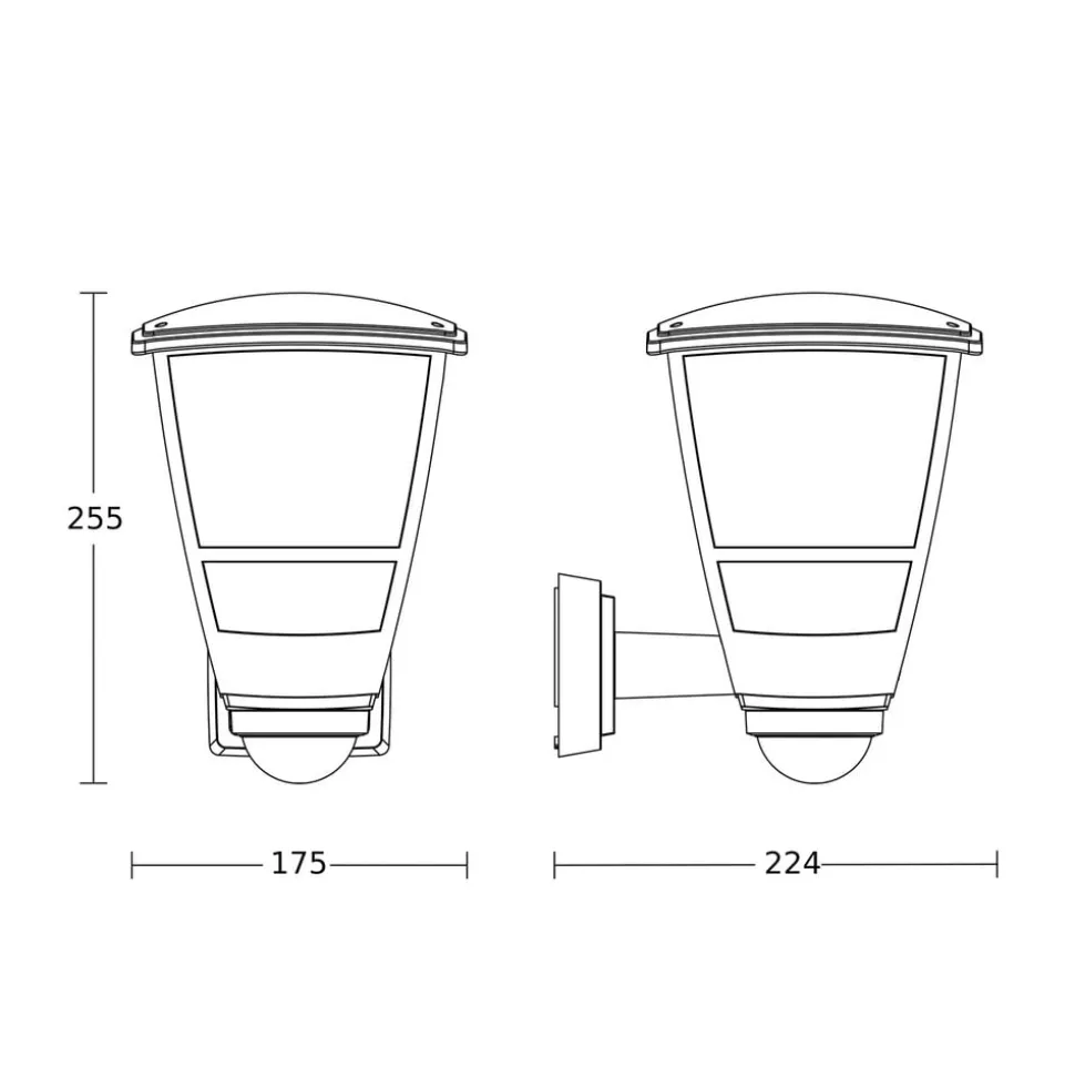 Udendørs væglampe L 10 S i sort med bevægelsessensor Udendørslampen L 10 S fra STEINEL har et klassisk design og sofistikeret funktionalitet. Den lygteformede lampe af UV-bestandig plast er udstyret med en E27-fatning, der kan monteres med pærer på op til 15 W. Refleksfolien i lanternens tag sikrer optimal belysning. Reflektorfolien i lygtens tag sikrer optimal belysning, mens den infrarøde sensor med et registreringsområde på 180° og en rækkevidde på op til 7,5 meter tænder lyset automatisk. Sensorens registreringsområde og rækkevidde kan begrænses individuelt ved hjælp af de medfølgende dækclips – Lysstyrken kan indstilles fra 2 til 2000 lux – Lysets varighed kan indstilles fra 5 sekunder til 60 minutter