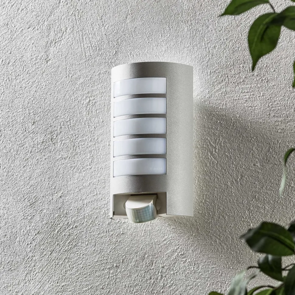 Væglampe L 12 S med bevægelsessensor til udendørs brug Moderne, kompakt udendørs væglampe med komfort, sikkerhed og energieffektivitet i “tysk kvalitet”. Denne udendørslampe med sensor har aluminiumsender af høj kvalitet, moderne design og sensorteknologi, der har bevist sit værd en million gange. Registreringsvinklen er 180° med en maksimal rækkevidde på 10 m. Sensorens store drejeområde (90°) og muligheden for at dække enkelte segmenter betyder, at registreringsområdet kan tilpasses optimalt til de omgivende forhold.