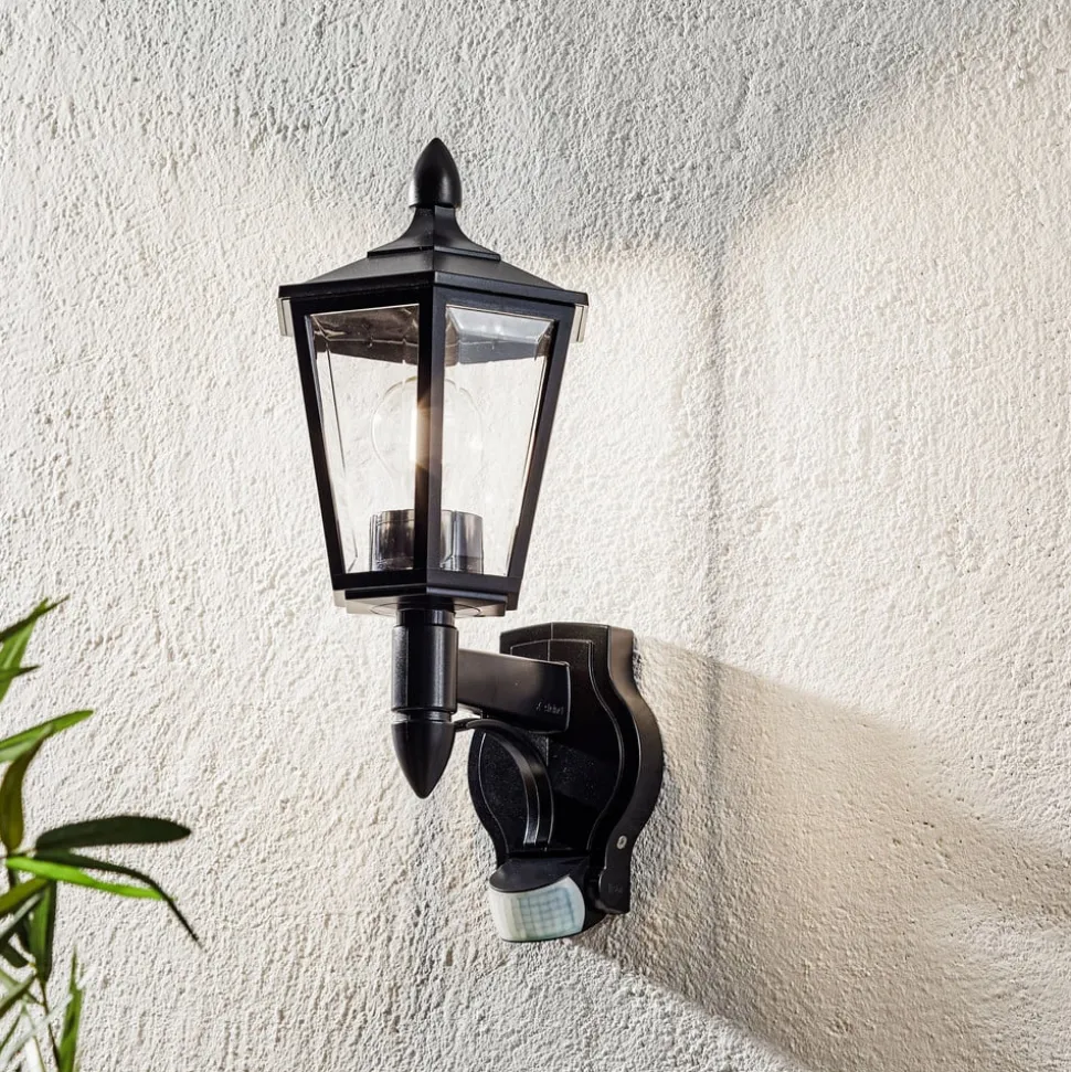 Nostalgisk og moderne teknologi – L 15 S udendørs væglampe med bevægelsessensor Formen på L 15 S udendørslampe med sensor svarer til den klassiske væglanterne. Valget af pære giver L 15 masser af muligheder for design. Registreringsområdet kan nemt tilpasses omgivelserne takket være sensorens store drejeområde på 90° og muligheden for at dække enkelte segmenter – Registreringsvinkel: 180° – Rækkevidde: maks. 10 m – Skumringsindstilling: 2 – 2.000 lux – Tidsindstilling: 8 s – 35 min – Installationshøjde: maks. 3 m
