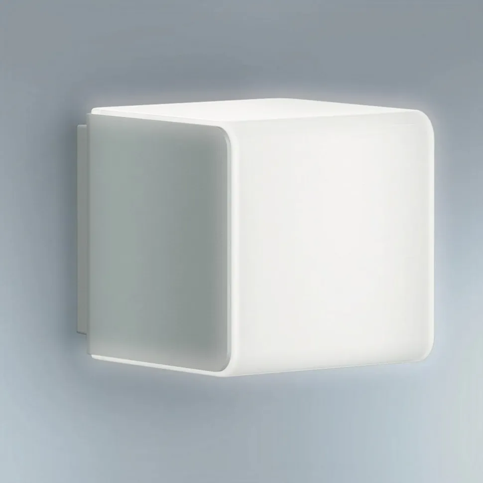 STEINEL Connected Lighting – LED udendørs-væglampe L 830 SC med integreret sensor Den kubeformede LED udendørs-væglampe L 830 SC er udstyret med en intelligent højfrekvenssensor, der kun reagerer på menneskelig bevægelse og ignorerer bevægelser fra små dyr eller blade, der bevæger sig i vinden. Den har en registreringsvinkel på 160° og en rækkevidde på 5 m. Den udendørs LED-væglampe udsender varmhvidt lys, der spotlightes opad, fremad og nedad gennem den satiniserede diffusor. Den udendørs væglampe er Bluetooth-aktiveret og kan integreres i WLAN-netværket og dermed styres smart via den gratis STEINEL-app (til Android og iOS). Tekniske data: – Konfiguration udelukkende med STEINEL Connect-appen – Rækkevidde justerbar 1 – 5 meter – Lysstyrke kan vælges 2 – 2000 lux – Lysets varighed kan justeres fra 5 sekunder til 60 minutter – 4 timers kontinuerligt lys kan justeres – Grundlysfunktion kan justeres i 10 minutter, 30 minutter, hele natten – Monteringshøjde maks. 2,5 m