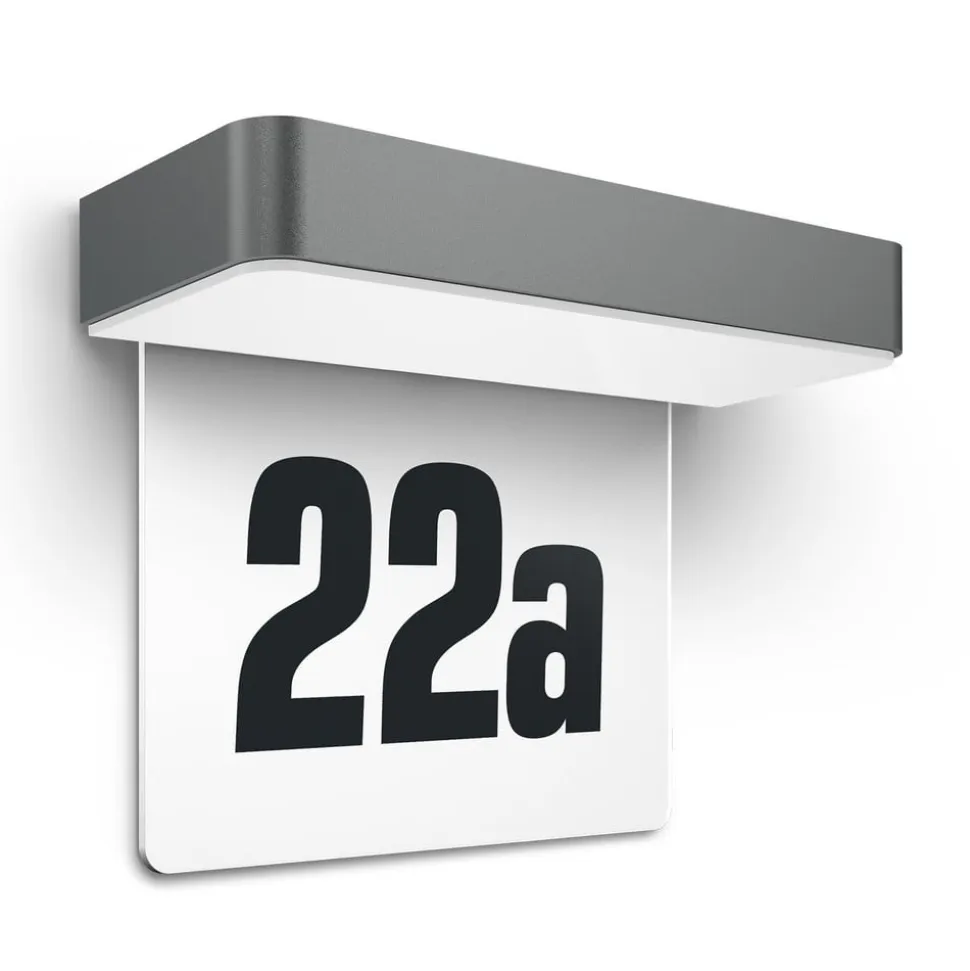 Antracitfarvet XSolar SOL-O HN LED-solcellelys med husnummer arch