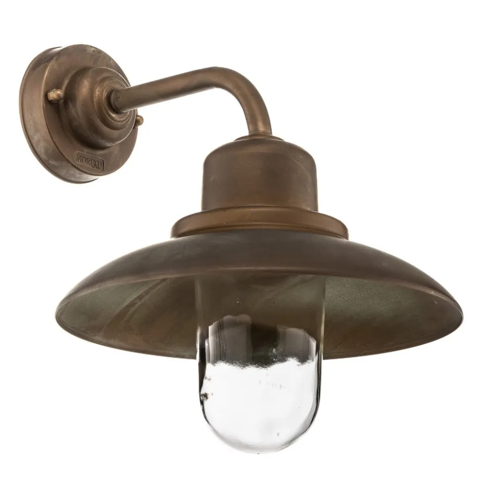 Rustik udendørs væglampe Susa af antik messing – søvandsbestandig Den udendørs væglampe Susa imponerer med sit rustikke look takket være sin form og farve, som især er kendetegnet ved den antik messingoverflade. Det transparente armaturglas sikrer optimal omgivelsesbelysning. Udstyret med IP44-beskyttelse.