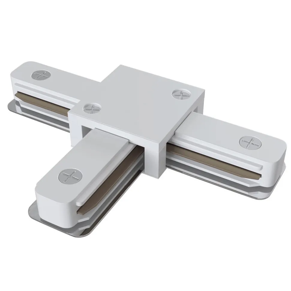 T-forbinder Skinne til enkeltkredsløbssystemer i hvid Det enkelte element kan bruges til at forbinde tre skinnesektioner sammen i en T-form.