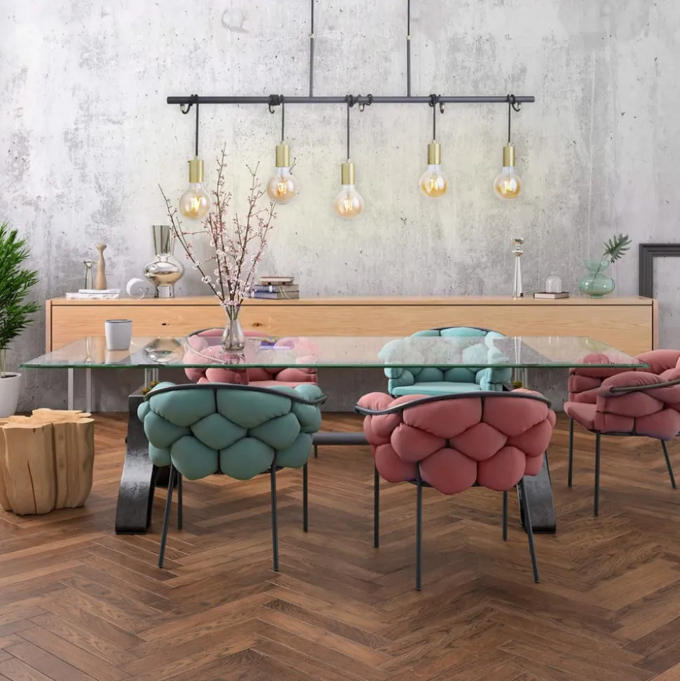 Tamara pendellampe er udelukkende lavet af metal, som holdes i en subtil sort farve. Som en visuel fremhævning er beslagene med rammerne farvet i mat messing, hvilket er en trendy kombination med sort. Moderne og enkelt designet, kan lampen få et individuelt præg i blot et par enkle trin. Stikkene hænger på sorte kabler, der kan vikles rundt om den vandret ophængte metalstang efter ønske. Det betyder, at du ikke kun kan påvirke højden på de enkelte lyskilder under installationen. Lampen er især velegnet til belysning af store spiseborde. Da der ikke er paraplyer, kommer især glødelamper til deres ret og skaber en hyggelig atmosfære.