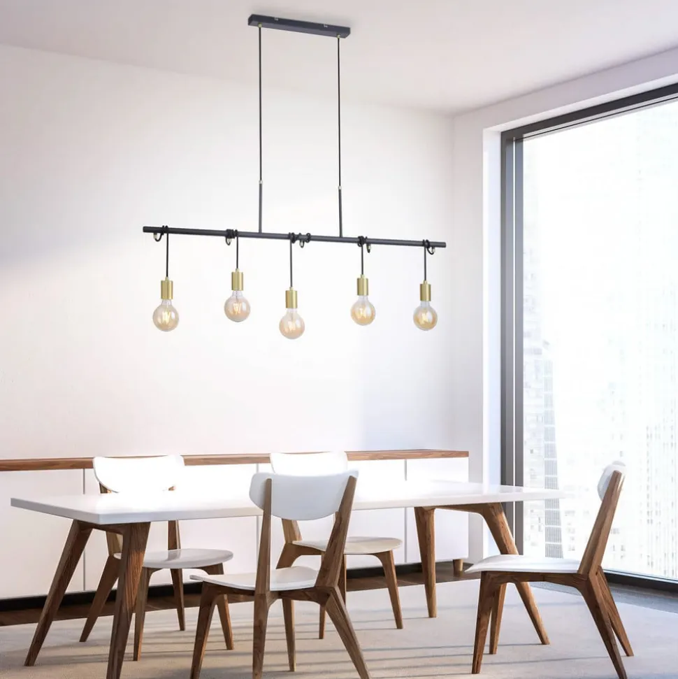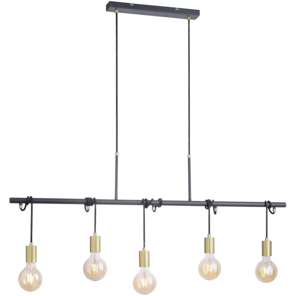 Tamara pendellampe med fem pærer med messingfarvede detaljer