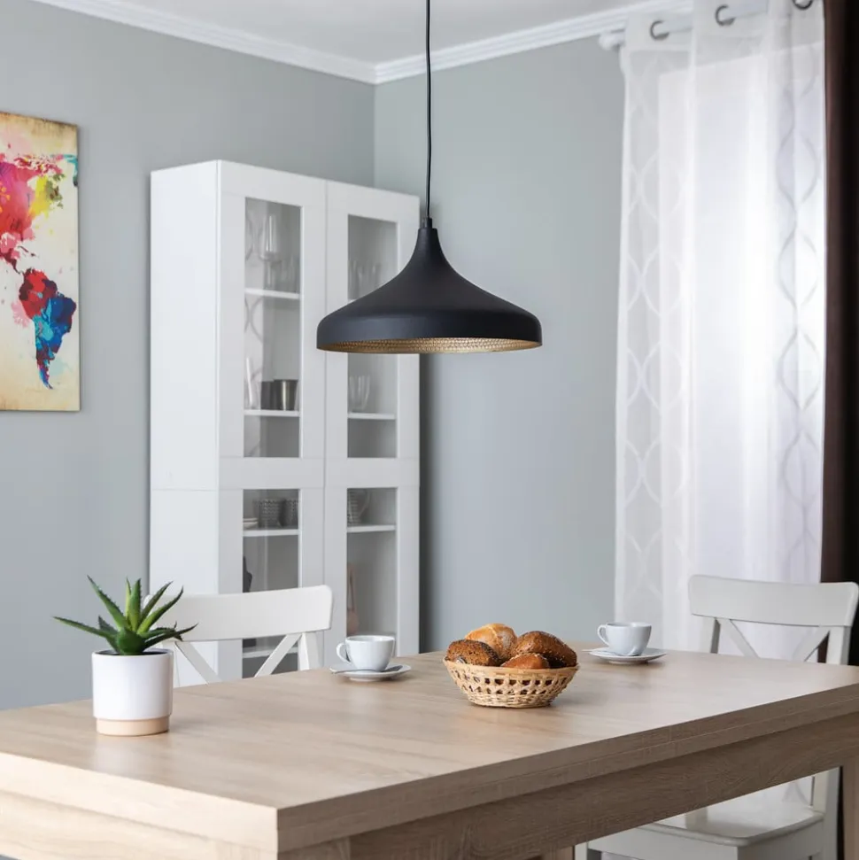 Tattoo 2641 hængelampe: Europæisk elegance i marokkansk-orientalsk stil Oplev Tattoo 2641 hængelampen, som forbedrer ethvert rum med sit marokkansk-orientalske design og den tiltalende farvekombination af sort og guld. Dette belysningselement er fremstillet i Europa og står for kvalitet og stilbevidsthed. Uanset om det er i stuen, spisestuen eller køkkenet – Tattoo 2641 skaber en atmosfære, der både indbyder til ophold og stimulerer kreativiteten. Armaturet er velegnet til brug med en ekstern dæmper for at tilpasse lysstemningen, selvom der ikke medfølger en dæmper. Oplev, hvordan Tattoo 2641 forvandler dit hjem til et sted, hvor lyset ikke kun opfylder en funktion, men bliver et fascinerende designelement.