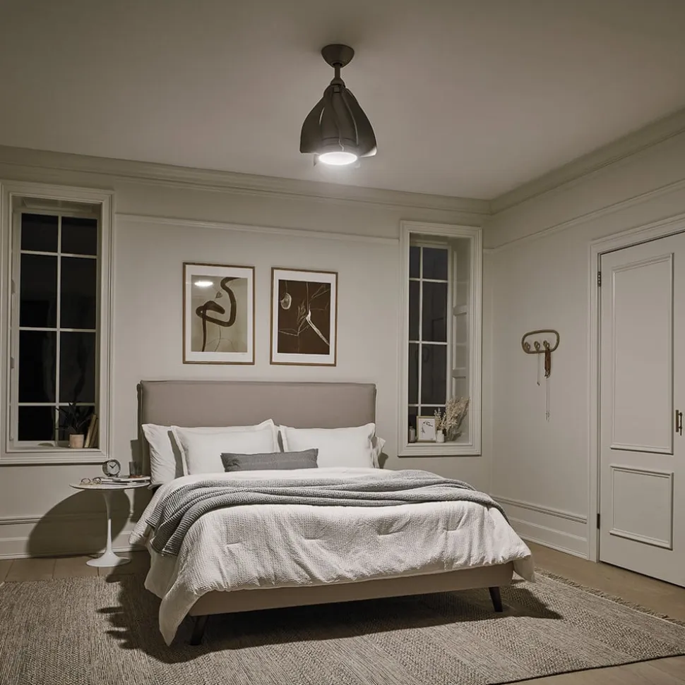 LED-loftventilator Terna med fem udtrækkelige vingerTerna er en LED-loftventilator, som er ideel til brug i små rum med et areal på op til 8 m². Belysningen kan dæmpes trinløst. Fjernbetjeningen er allerede inkluderet i leveringen. FunktionerLoftventilatoren Terna er udstyret med en vekselstrømsmotor og kan nemt indstilles i 3 hastigheder via den medfølgende fjernbetjening. Skiftet fra sommer- til vintertilstand sker også via fjernbetjeningen. Den optimale cirkulation af den opvarmede rumluft giver en velkommen energibesparelse. LED-lyskilden kan også skiftes og dæmpes via fjernbetjeningen.Tekniske data- 3 hastigheder: min. 105 o/min, maks. 300 o/min- 36,1 W- AC-motor- cirkuleret luftstrøm: 141 m³