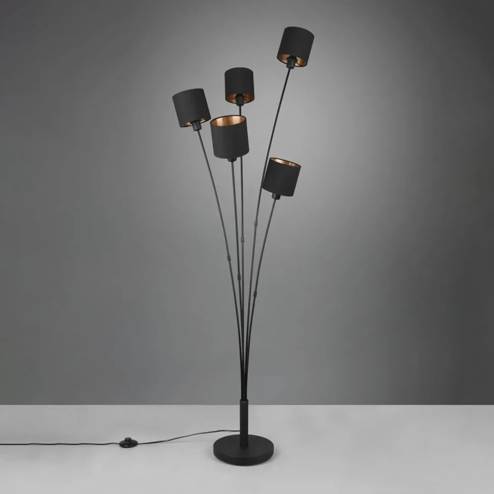 Tommy gulvlampe, sort/guld, højde 163 cm, 5-lys stof