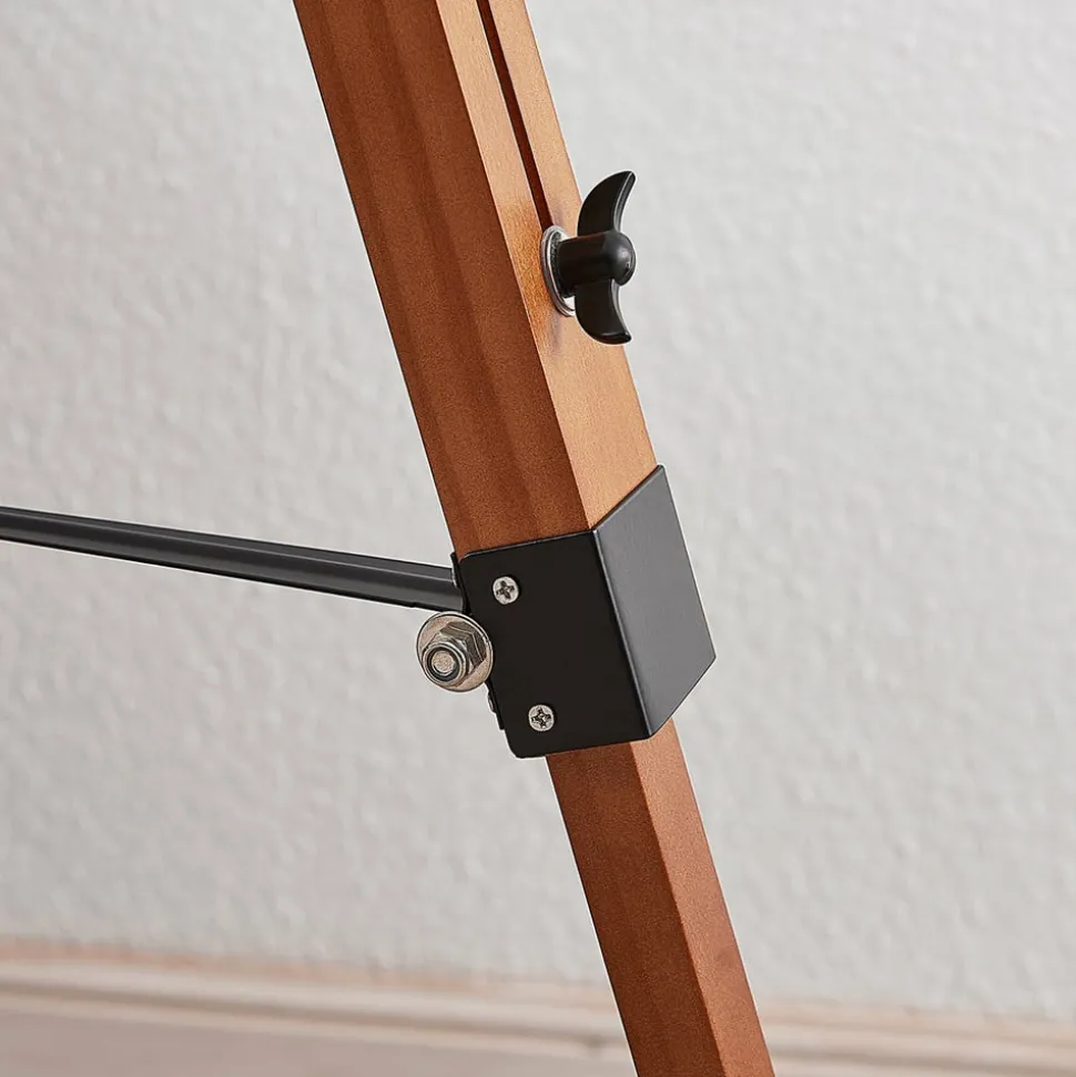 Trefodsgulvlampe Hilma med træstel og skærm med projektørlook