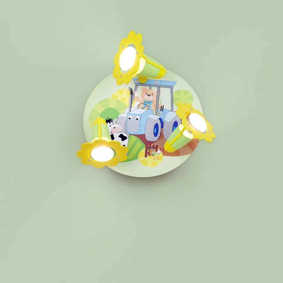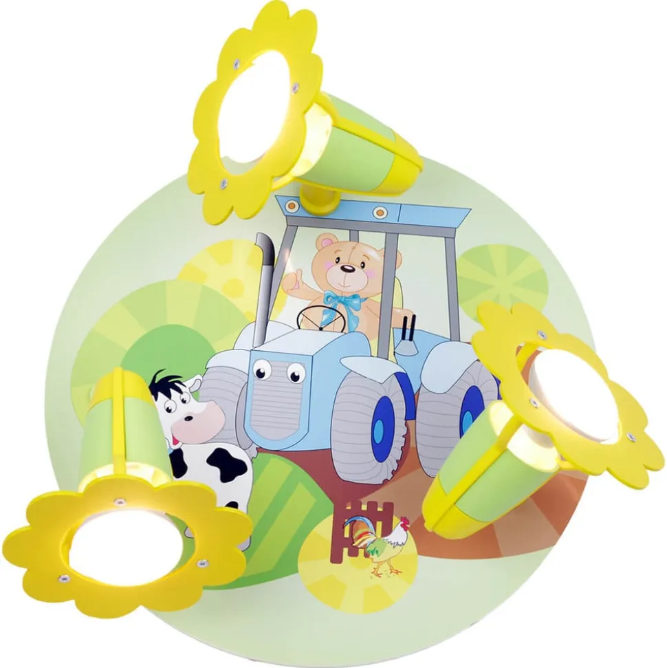 Der foregår altid noget på gården. Selv den lille bamse, den glade ko og den hårdtarbejdende traktor har meget at fortælle. Det børnevenlige motiv gør traktorens loftlampe sammen med de drejelige spotlights til ideel belysning til børneværelset.