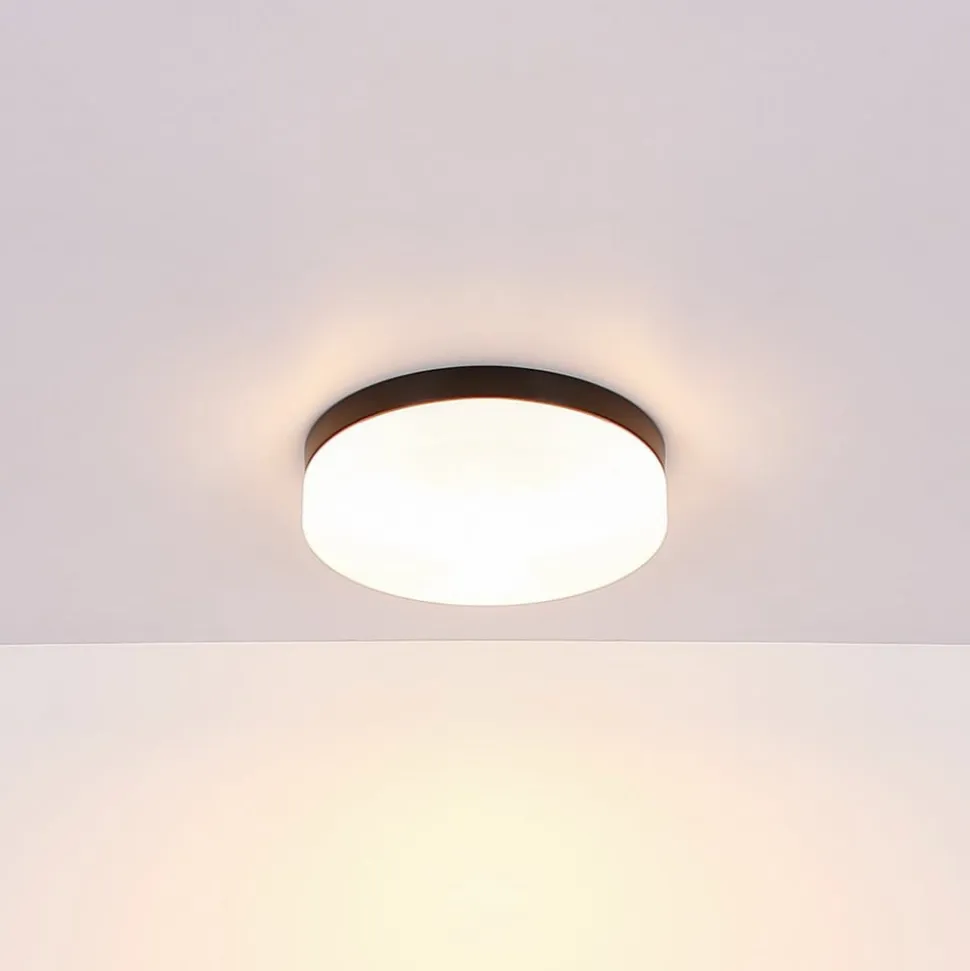 Udendørs loftslampe Vranos, mat sort, Ø 24 cm, aluminium