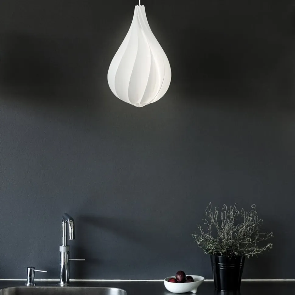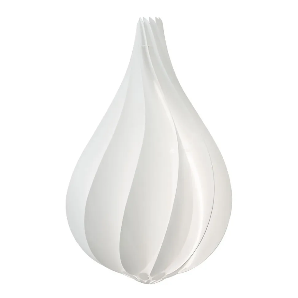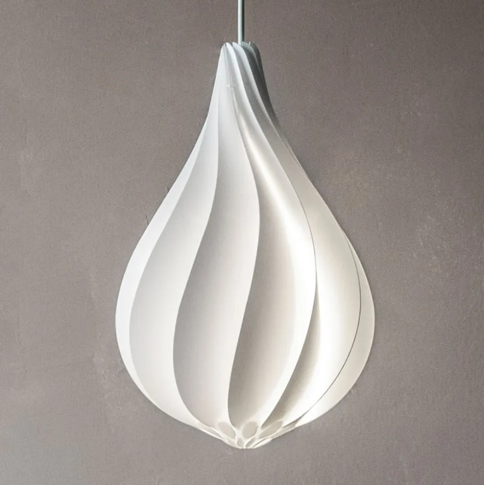 Alva pendellampen er som en lukket blomst, der smalner forsigtigt opad. Flydende, buede linjer dukker op på overfladen, som er skabt af de enkelte, ubrydelige komponenter. De sikrer, at lampen ser livlig og spændende ud. Den hvide farve på de enkelte dele og den lukkede form skaber en blændfri lysfordeling i hele rummet. Designeren Lorenzo Radaelli sammenligner lampen med den smukke form af Edison-pæren. Han taler om et forførende men simpelt design. På grund af den rene form og det tiltalende design er den velegnet til enhver moderne stue og bader den i et hyggeligt lys.