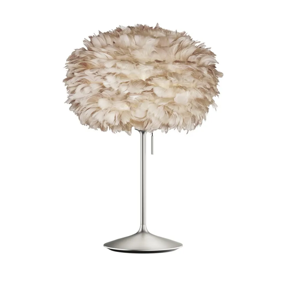 Bordlampe Eos medium med en skærm lavet af fjer på en stålramme