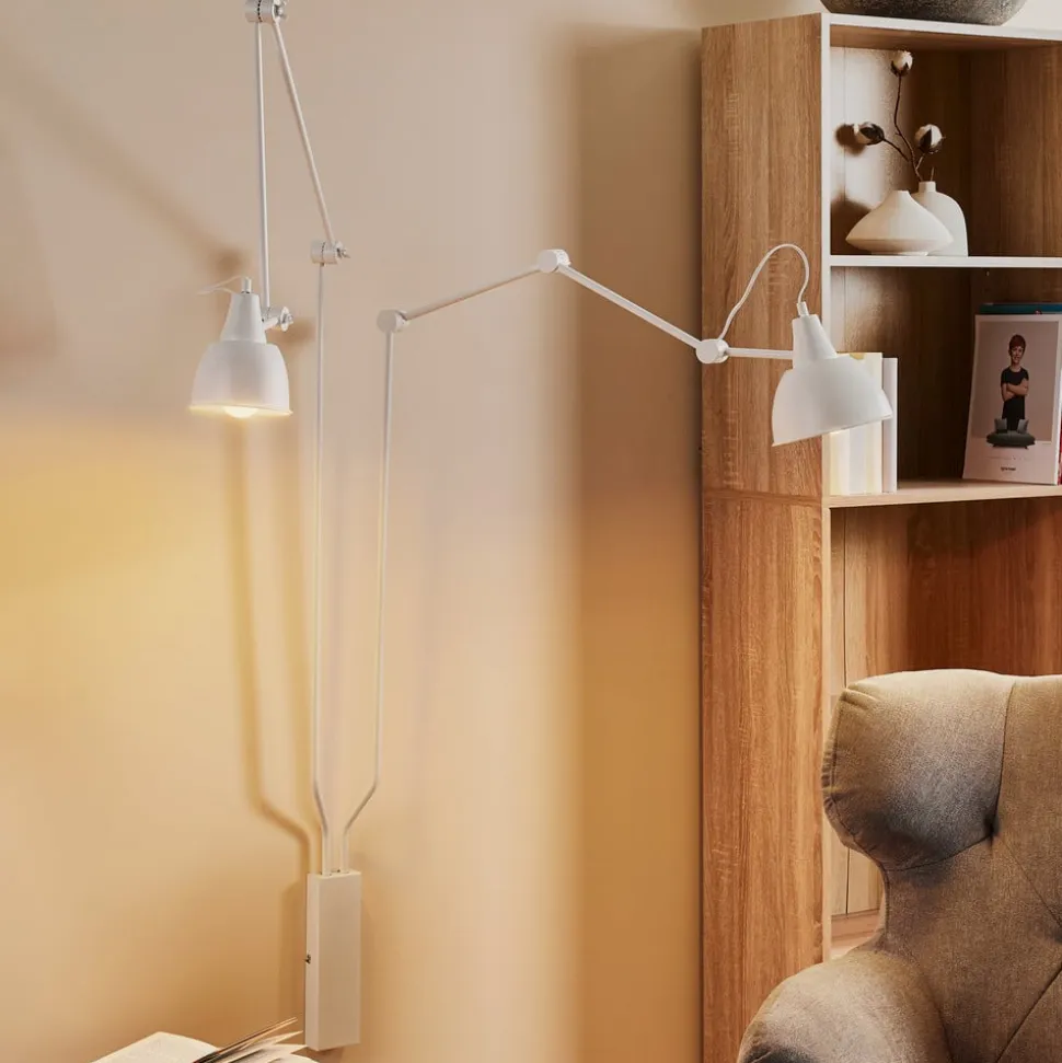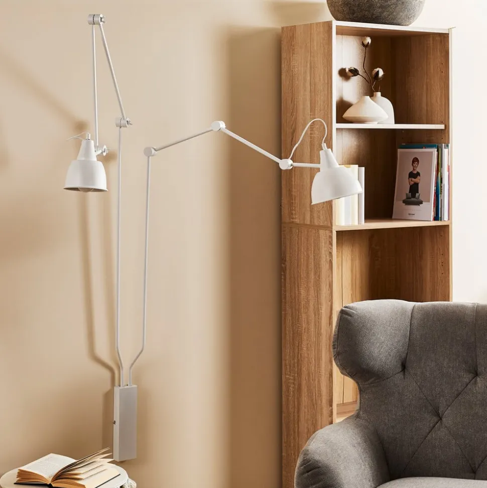 Væglampe 814 imponerer med sit moderne design og den høje kvalitet i metallet. Med sin elegante hvide farve passer den perfekt ind i forskellige indretningsstilarter og giver stuer og spisestuer en stilfuld atmosfære. Den justerbare konstruktion gør det muligt at tilpasse belysningen fleksibelt for at skabe forskellige stemninger og oplyse rummet optimalt.