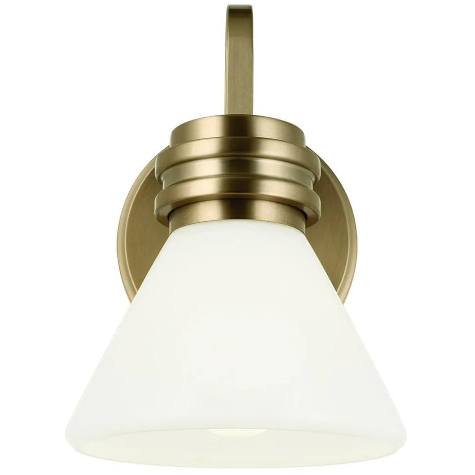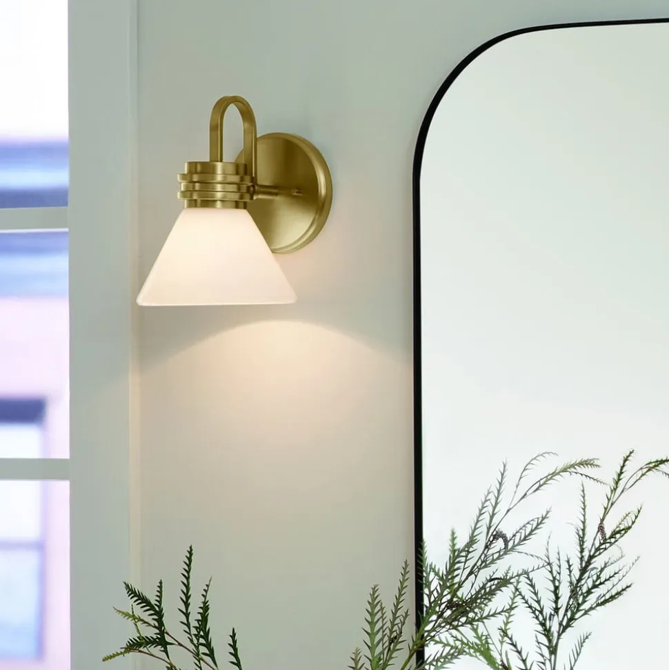 Væglampe Farum 1 består af et stålstel og en opal hvid, kegleformet skærm i glas og er takket være kapslingsgrad IP44 perfekt til badeværelset, hvor den placeret ved siden af spejle giver et flot look og harmonisk belysning. Lampen med G9-fatning leveres med LED-pære med varmhvid lysfarve, som er nem at udskifte.