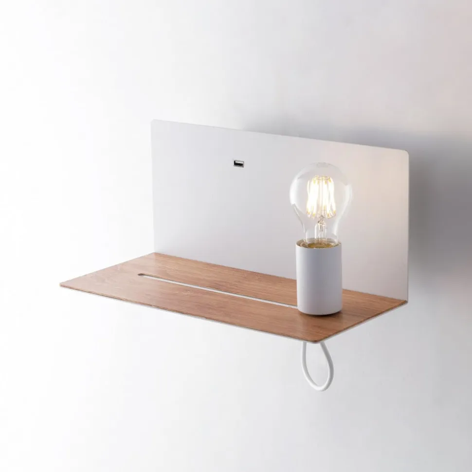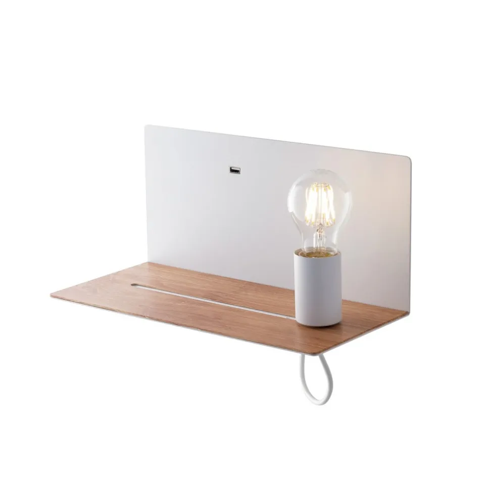 Flash-væglampe med individuelt placérbar fatning Med sit hyldelignende udseende giver Flash-væglampen et hyggeligt præg til ethvert rum. Fatningen kan flyttes på bundpladen og placeres til højre, i midten eller til venstre.