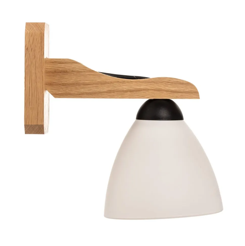 Væglampe Haro forener moderne skandinavisk design med den naturlige skønhed af træ og glas. Glasskærmen i kombination med det lyse egetræ giver ethvert rum en varm og indbydende atmosfære. Denne lampe er ideel til stuen, soveværelset og spisestuen og giver mulighed for at justere lysintensiteten individuelt via en ekstern dæmper.