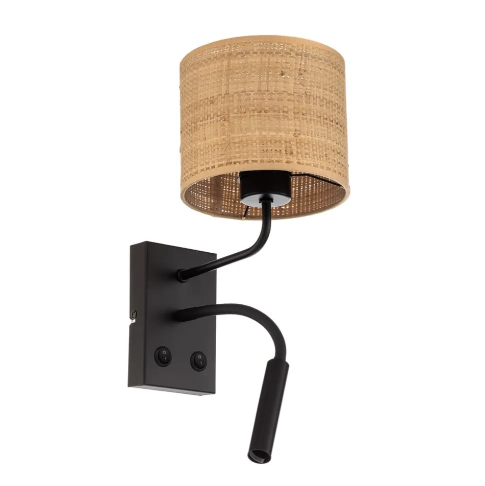 Væglampe Jovin med 1 lyskilde, spot og rattan lampeskærm kombinerer moderne design med funktionel belysning. Lampen er fremstillet af højkvalitetsstål og plast og er et stilfuldt supplement til forskellige boligområder såsom stuen, entreen, soveværelset og spisestuen. Den beige og sorte rattan lampeskærm giver lampen et naturligt look, der passer harmonisk ind i moderne indretningsstilarter.
