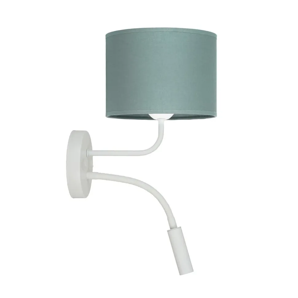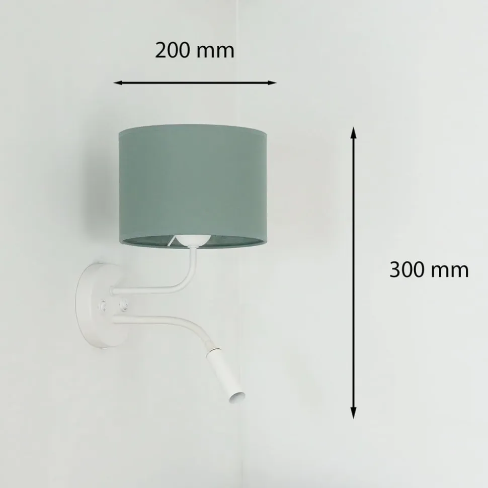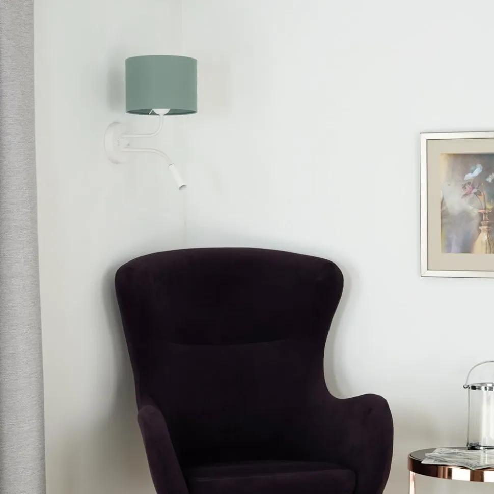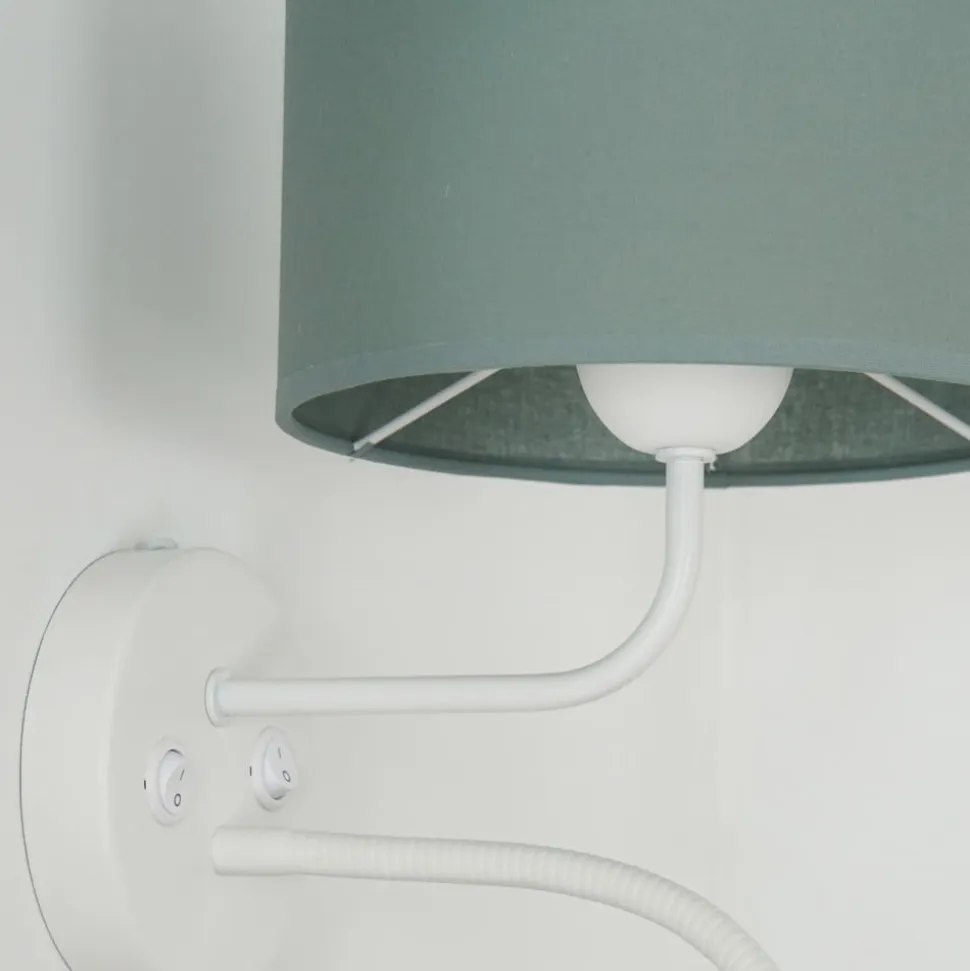 Væglampe med rulle, stof, hvid/sage, læselampe