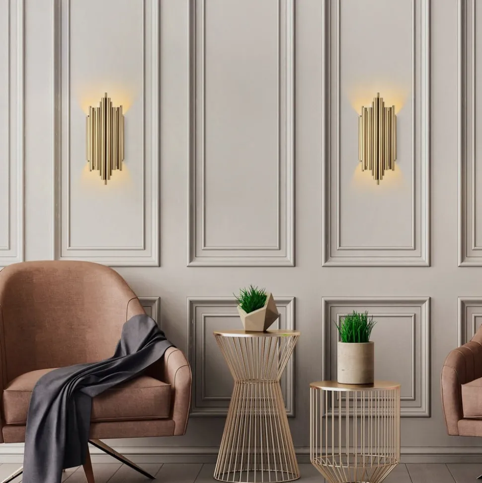 Væglampe Reis 13341 imponerer med sit moderne design og den elegante guldfarvede metaloverflade, der giver ethvert rum et luksuriøst præg. Den er fremstillet i Europa og forener materialer af høj kvalitet med førsteklasses forarbejdning. Denne lampe er ideel til brug i stuer, spisestuer og soveværelser samt i entreer og passer perfekt ind i forskellige indretningsstilarter.