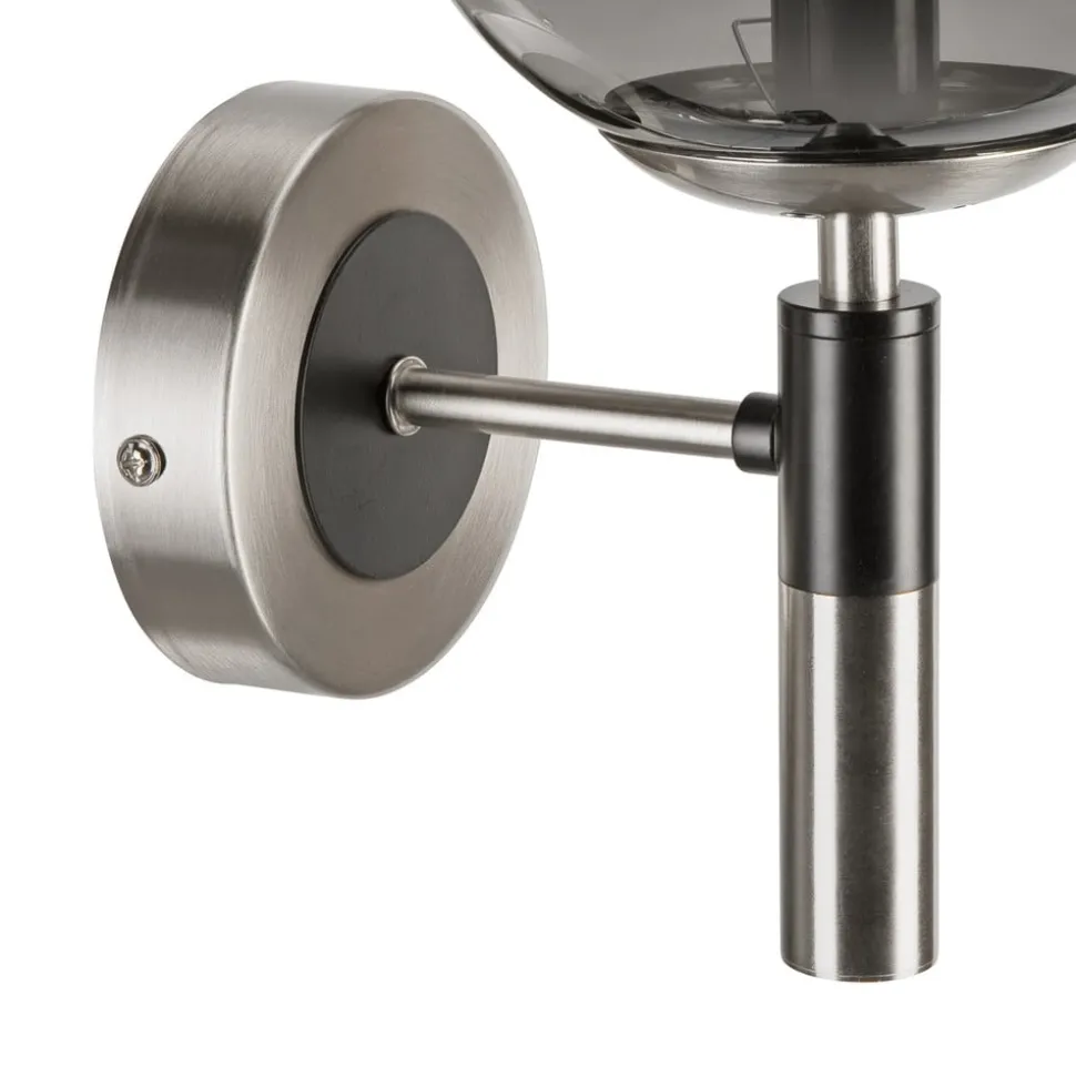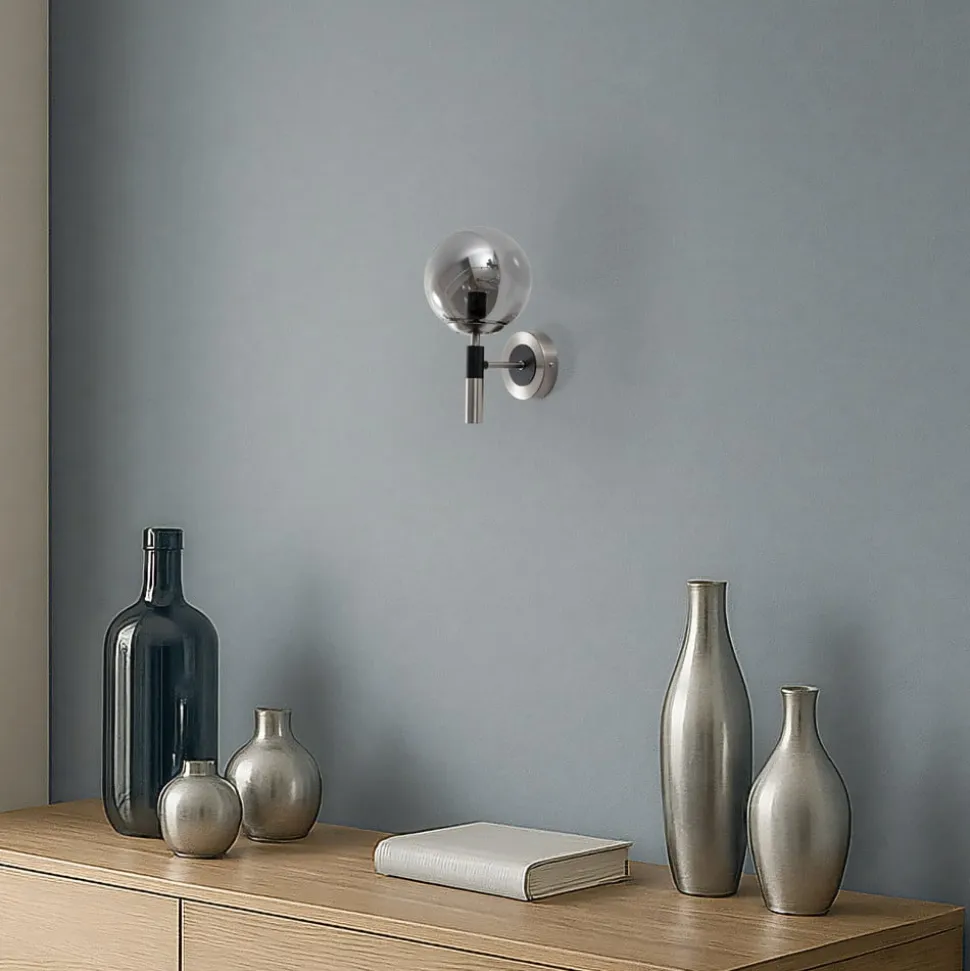 Væglampe Rollo kombinerer stilfuldt design med funktionel alsidighed. Lampen er fremstillet af højkvalitetsglas og metal og præsenterer sig i en elegant røggrå farve med kromfarvede accenter. Denne kombination giver ethvert rum, hvad enten det er stuen, spisestuen eller entreen, en helt særlig atmosfære. Lampen er fremstillet i Europa og står derfor for kvalitet og præcision.